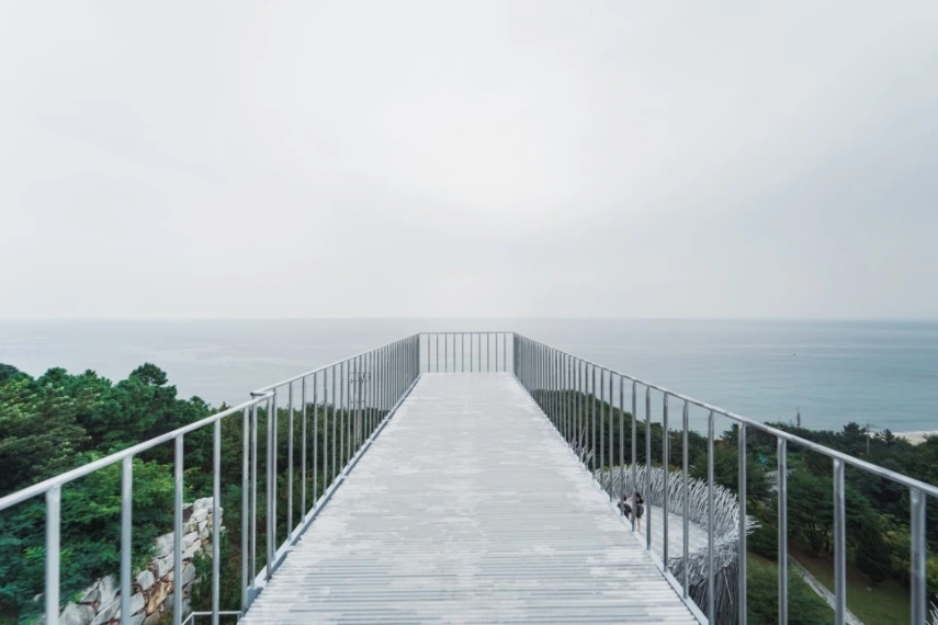 이제는 하슬라아트월드의 동그라미 포토존에서 사진을 찍고 파도의 길을 관람한 후, 스카이 워크를 통해서 야외조각공원까지 편하게 이동할 수 있다. 스카이 워크라는 이름처럼 탁 트인 동해바다와 하늘 위를 걷는 기분으로 사진을 남겨보는 건 어떨까.