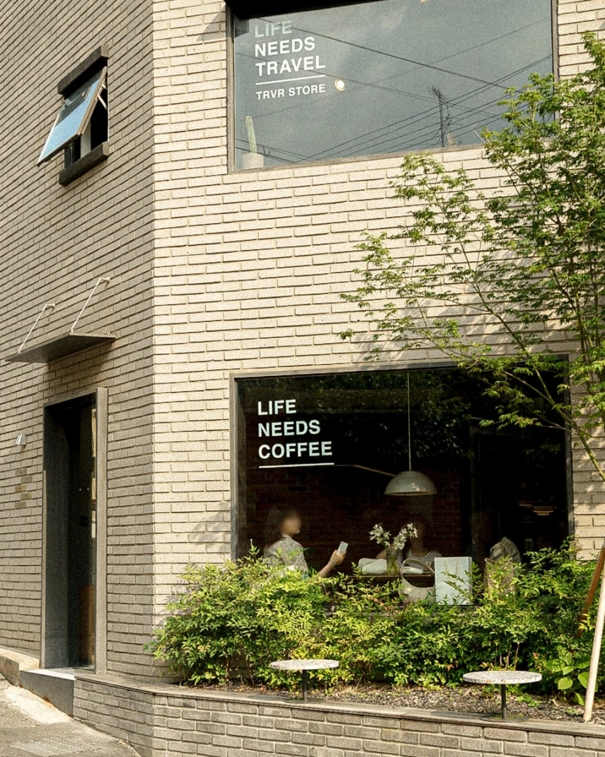 TRVR은 모델 장윤주의 남편으로 알려진 정승민 디자이너가 대표로 있는 브랜드로, 쇼룸과 카페를 같이 운영하고 있다. 대표의 유명세를 언급한 건 유명인이 하는 브랜드이니 가보라는 의미에서 한 말은 절대 아니다. 잘 만들어진 공간은 만든 이의 이미지와 가치관이 잘 묻어난다. 때문에 대표가 누군지 안다면 공간과 사람의 이미지를 매칭하며 의미를 찾을 수 있으니 공간을 즐기는 소소한 재미요소가 된다. 쇼룸, 카페 모두 대표와 잘 어울리는 걸 보면 잘 만들어낸 곳이라 할 수 있겠다.