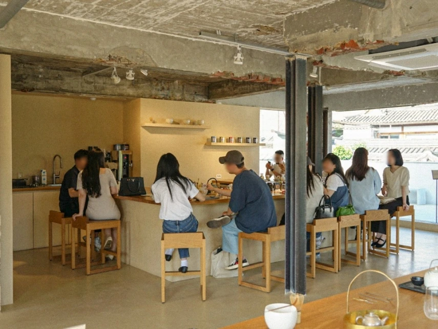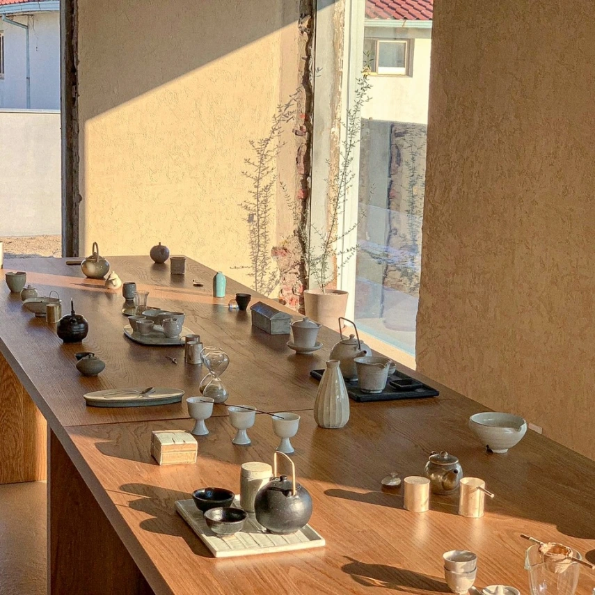 카페라는 어원이 커피에서 왔다는 설이 있을 정도로 흔히 카페는 '커피를 파는 곳'으로 생각한다. 하지만 이곳에선 커피를 팔지 않는다. 대신 국내외 다양한 곳에서 공수 한 질 좋은 찻잎, 허브로 내려낸 차를 선보인다. 'ㄷ' 자로 된 바 테이블에 10개 남짓한 좌석으로, 큰 공간에 비해 좌석수가 굉장히 적다. 심야식당이 생각나는 테이블 배치는 차를 만들어내는 것부터 다기에 담아내는 것까지 모든 순간을 볼 수 있다. 이는 단순히 차를 마시는 시간이 '마신다'라는 행위가 아닌 차를 즐기는 모든 순간이 '차 한 잔의 시간'임을 보여 주는 게 아닐까 싶다.