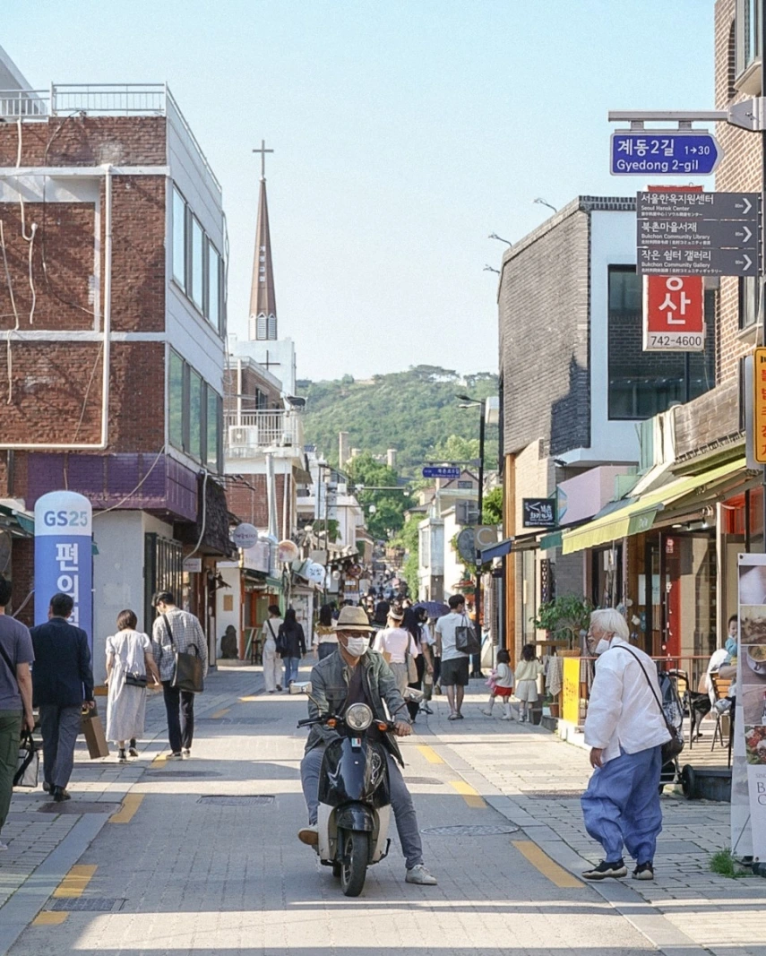 계동길의 시간은 느리게 간다. 준공된 지 지긋해 보이는 한국적인 건물과 낮은 상점이 즐비한 이국적인 거리는 오래되고 낡았다는 느낌보다는 클래식한 멋을 보여준다. 걸으면서 지나치는 사람들, 오픈된 상점의 점원 등 여러 사람을 오고 가며 만날 수 있다. 사람 많은 걸 좋아하지 않는데도 이곳에서는 북적거린다기보단 사람 냄새가 난다고 표현하고 싶다. 이런 정겨운 사람 냄새가 향수를 불러일으키는 건지 안국에 오면 이곳을 잠시라도 들르게 된다.