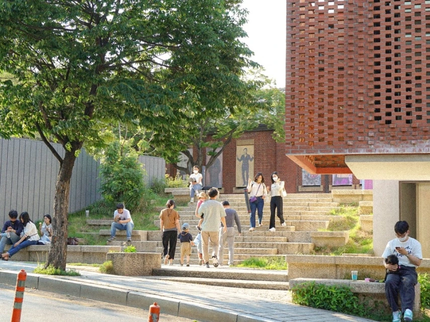 정독도서관으로 들어가는 길, 낮은 계단이 있다. 이 계단에 앉아 책을 보거나 음악을 듣거나 각자의 시간을 보내고 있는 모습을 볼 수 있다. 길가에 있는 계단이어서 사람들의 시선이 신경 쓰일 법도 한데, 서로 전혀 개의치 않고 각자의 행복을 즐긴다. 그들은 낭만적으로 시간 보내는 법을 아는 사람들이지 않을까 싶다.
