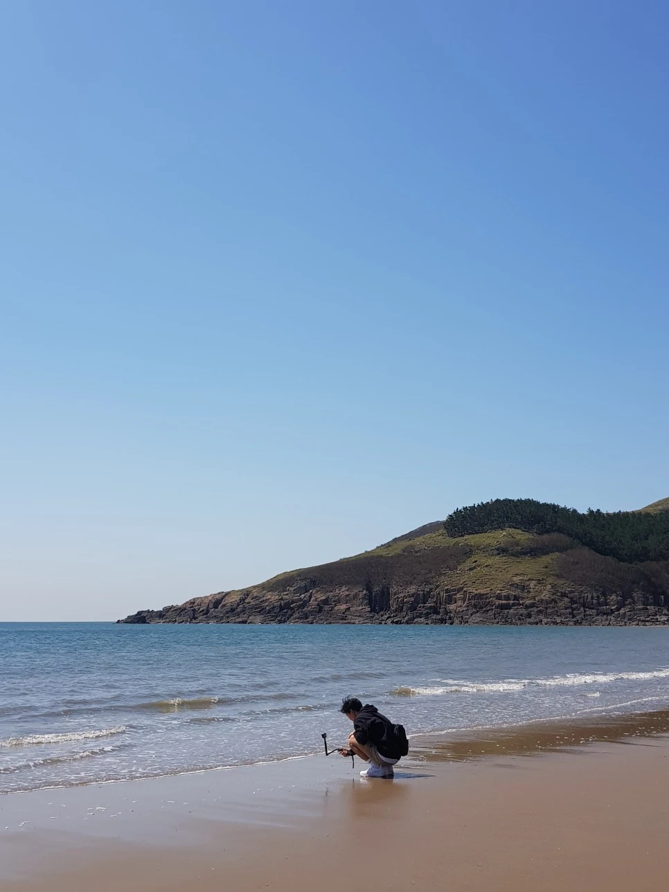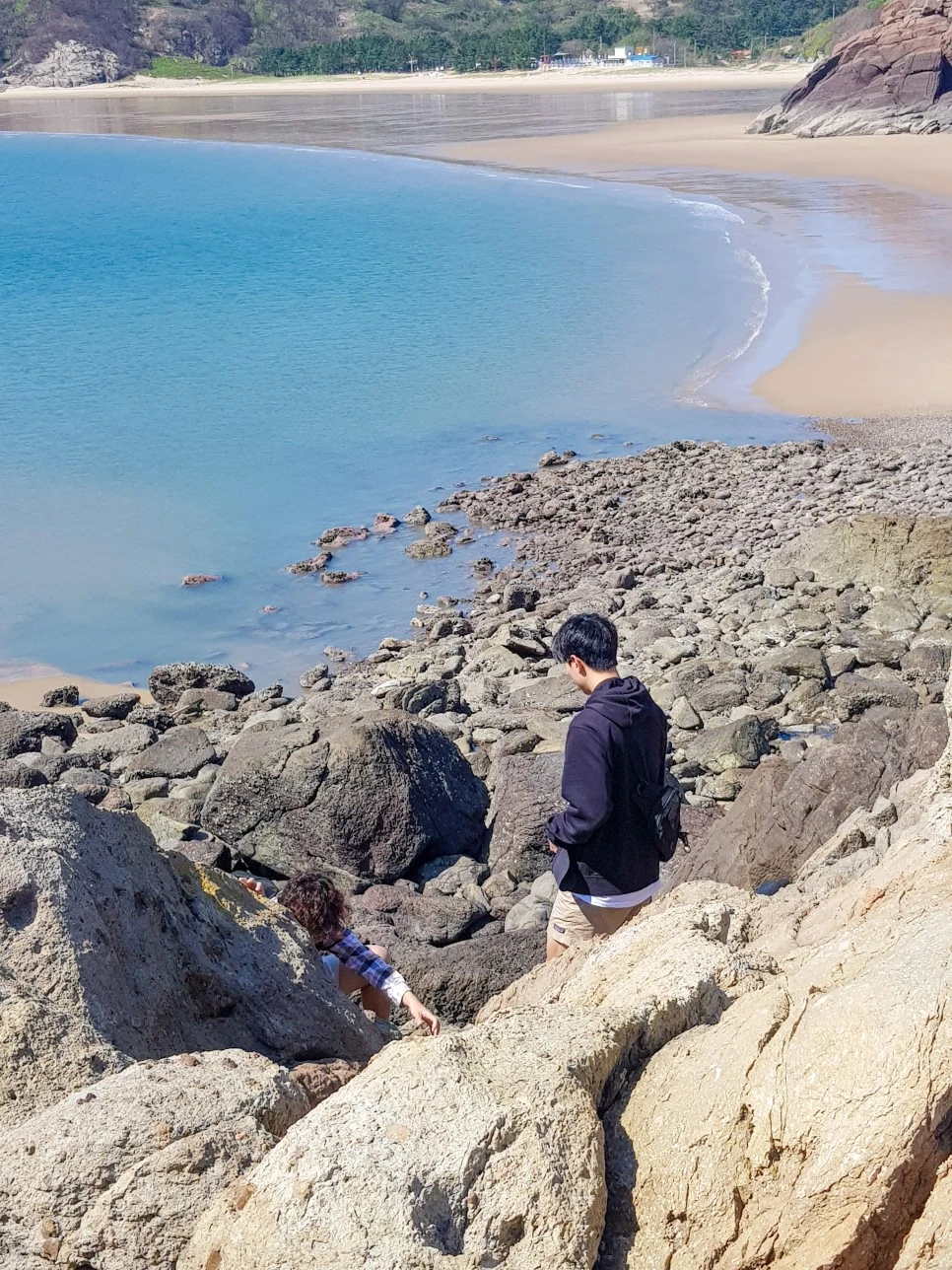 서해바다에 감동한 중허씨는 그 색을 담고 싶어서 열심히 촬영했다. 언뜻 보기엔 제주도 화산 지형과 비슷해 보이기도 하고, 외국처럼 느껴질 정도로 이국적인 풍경을 자아낸다.