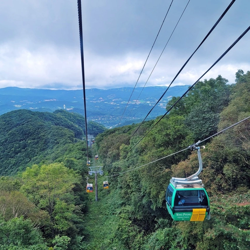 첫 번째로 소개할 곳은 강원도 평창의 용평리조트에 있는 발왕산 케이블카다. 국내 최초이자 최대 규모의 스키장이 있는 용평리조트에서 운영하는 케이블카로, 왕복 7.4km의 국내 최장 길이를 자랑한다. 하부 탑승장에서 발왕산 정상의 상부 하차장까지는 약 18분이 소요된다.