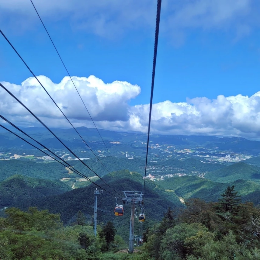 발왕산 정상까지 오르며 몇 개의 산봉우리를 거쳐 갔는지 모른다. 새삼 국내 최장 길이 케이블카라는 것이 실감 나는 순간. 산봉우리 하나를 넘어 '이게 끝인가?' 싶으면 아직 더 남았고, '이젠 끝났겠지?' 싶은데도 더 남았던 기억이 있다. 이 첩첩산중에 케이블카를 설치한 것 자체가 대단해 보일 정도.