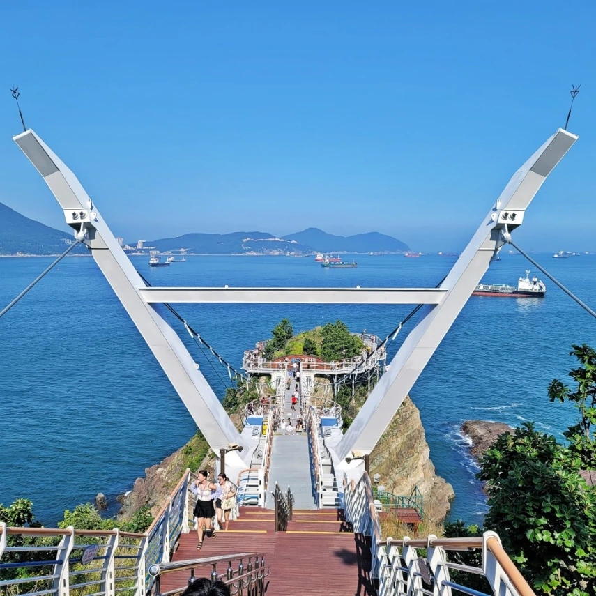 용궁구름다리에서 부산 송도 해수욕장의 풍경을 배경 삼아 멋진 사진을 남겨보길 바란다. 참고로 사진 속 오른쪽 뒤, 바다를 가로지르는 긴 다리는 송도와 영도를 잇는 남항대교다.