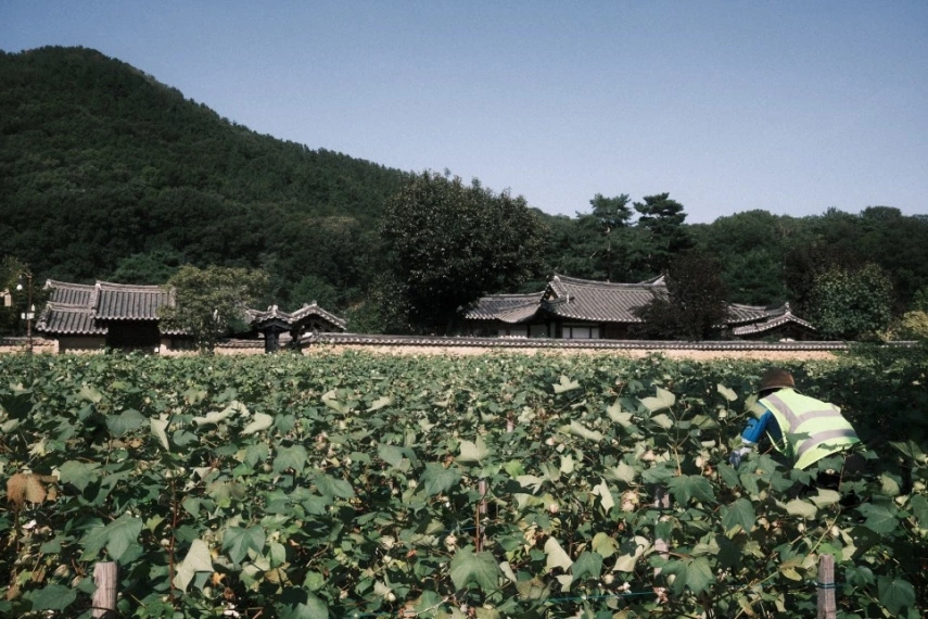 문익점의 공헌을 기리기 위해 입구에는 꽤 넓은 부지의 목화밭이 있다. 마침 수확철이라 많은 사람들이 목화를 재배하고 있었다. 에디터는 이곳에서 진짜 목화를 처음 봤다. 목화는 종 모양의 뾰족한 열매가 터지면서 솜이 튀어나온 모습이다.