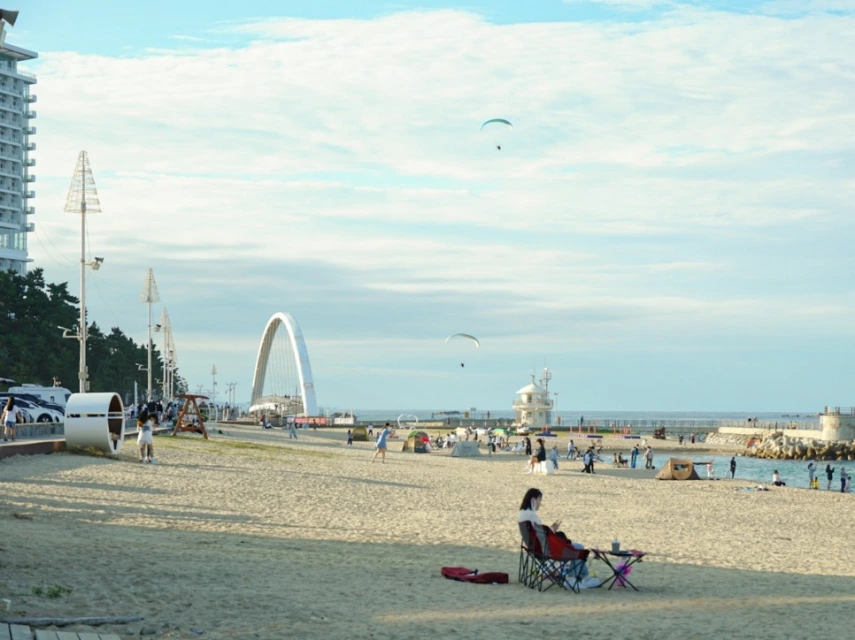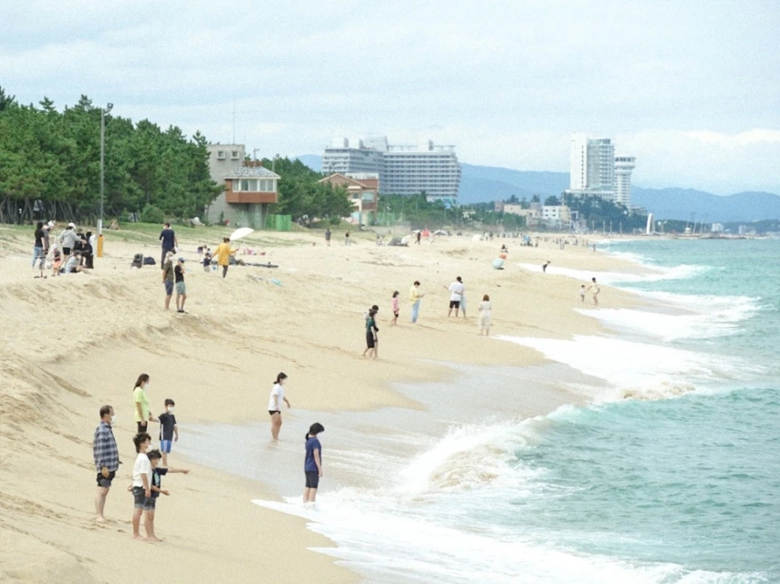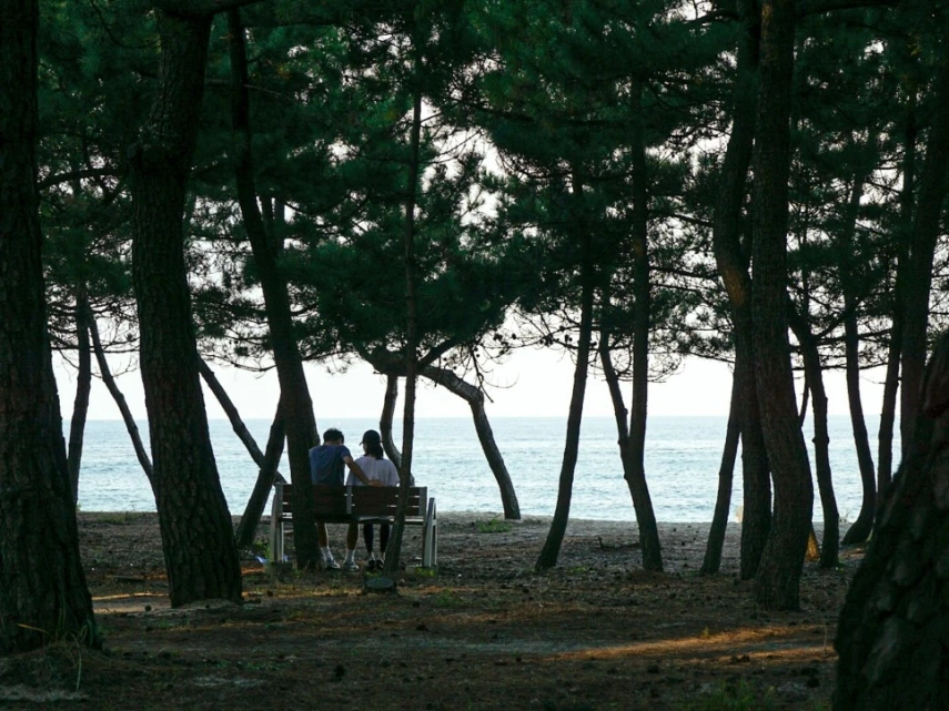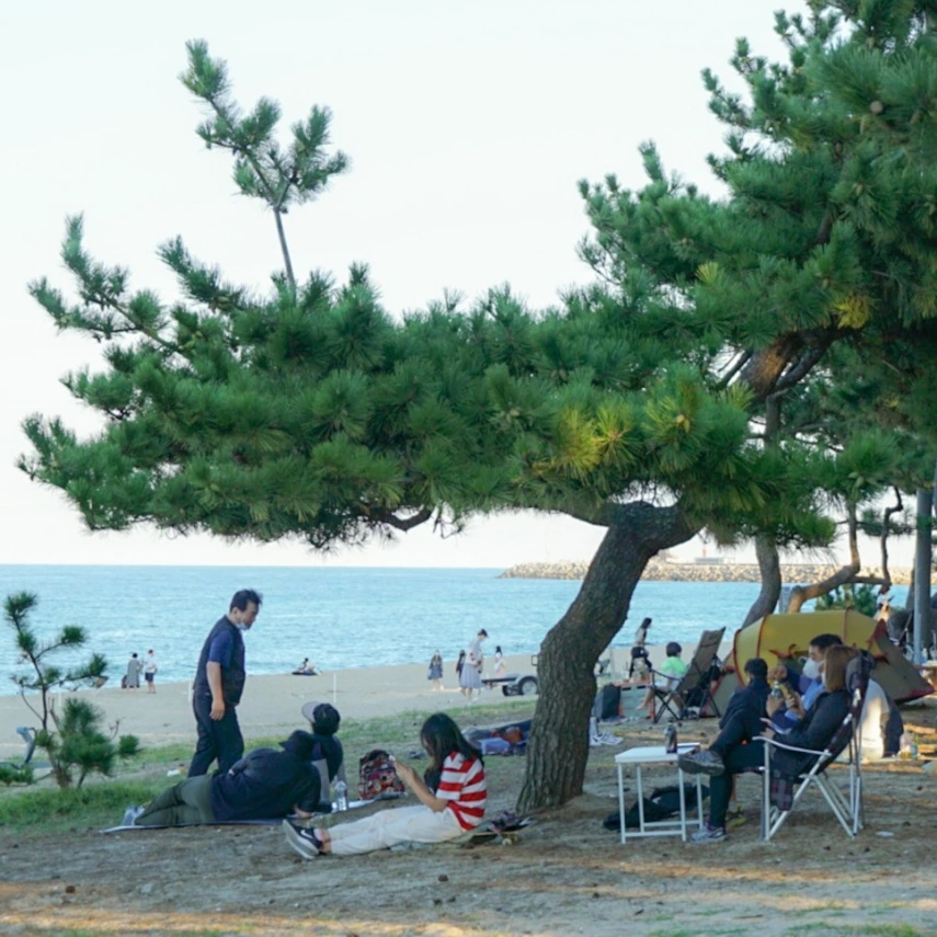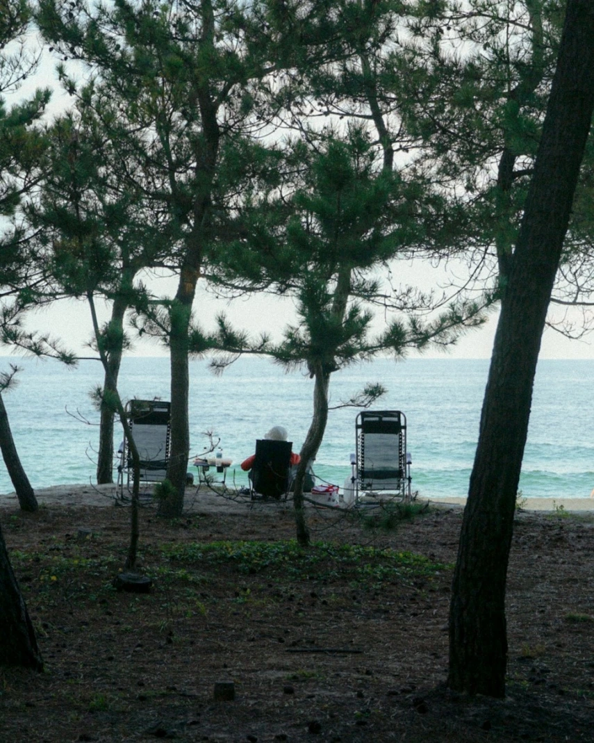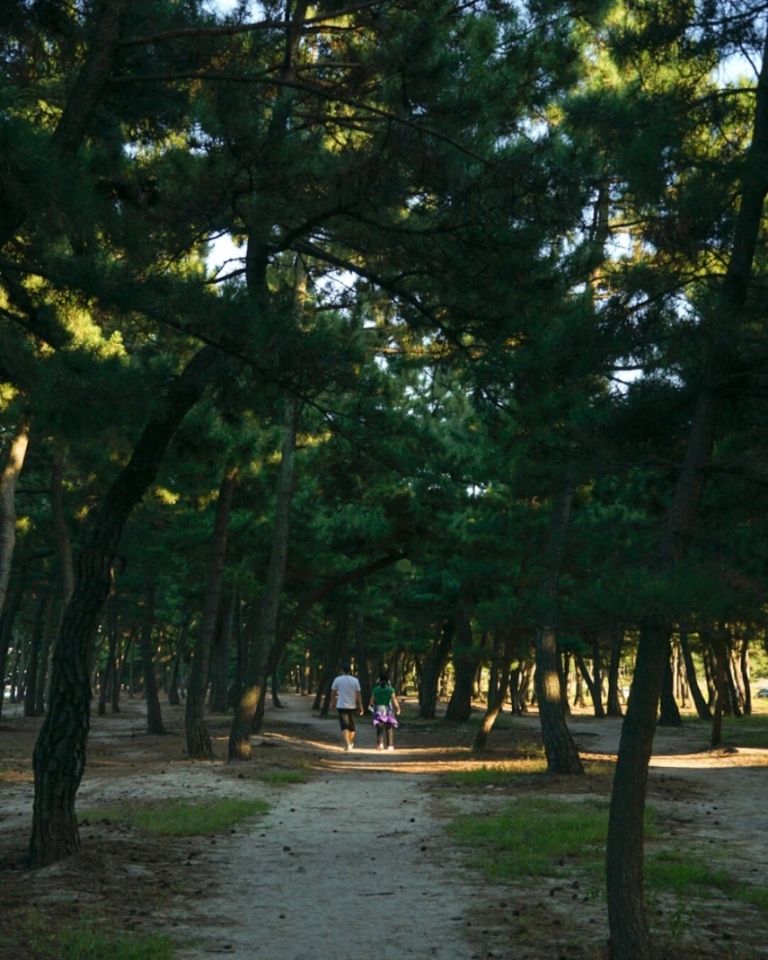바다와 소나무 숲을 즐기는 사람들이의 모습이 퍽 보기 좋다. 높게 뻗은 소나무 숲 사이를 산책하기도, 가만히 앉아 바다를 즐기기도 한다. 어떤 모습으로 던 자유를 향유함이 잘 어울리는 곳이다. 캠핑 체어만 있어도 근사한 쉼터가 된다. 모래 위 의자 하나 박아두고 바다의 청량함에 피톤치드 토핑으로 여유로운 정취를 즐겨보자.