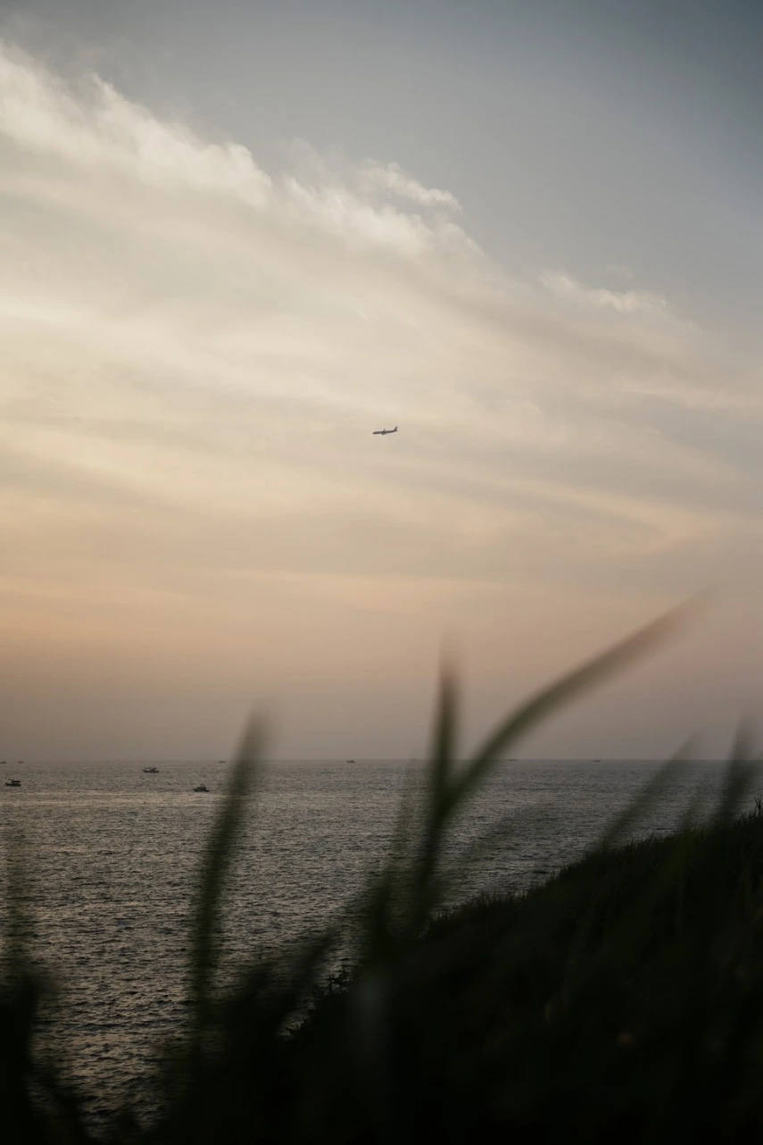 윤슬이 빛나는 바다 위에서는 배, 붉게 물드는 하늘에서는 비행기를 볼 수 있다. 아무것도 없는 바다, 하늘과는 또 다른 분위기를 느낄 수 있을 것.