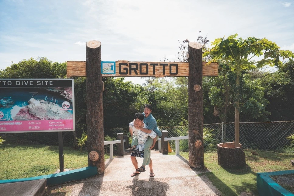 그로토는 사이판의 유명한 수중 석회암 동굴이다. 해저 21m 깊이로, 리아스식 해안을 연상케 하는 경관이 이어진다. 하늘에서 그로토의 전경을 내려다보았을 때, 말로 표현하기 어려울 정도로 신비하고 아름다운 곳이라는 것을 느낄 수 있었다.