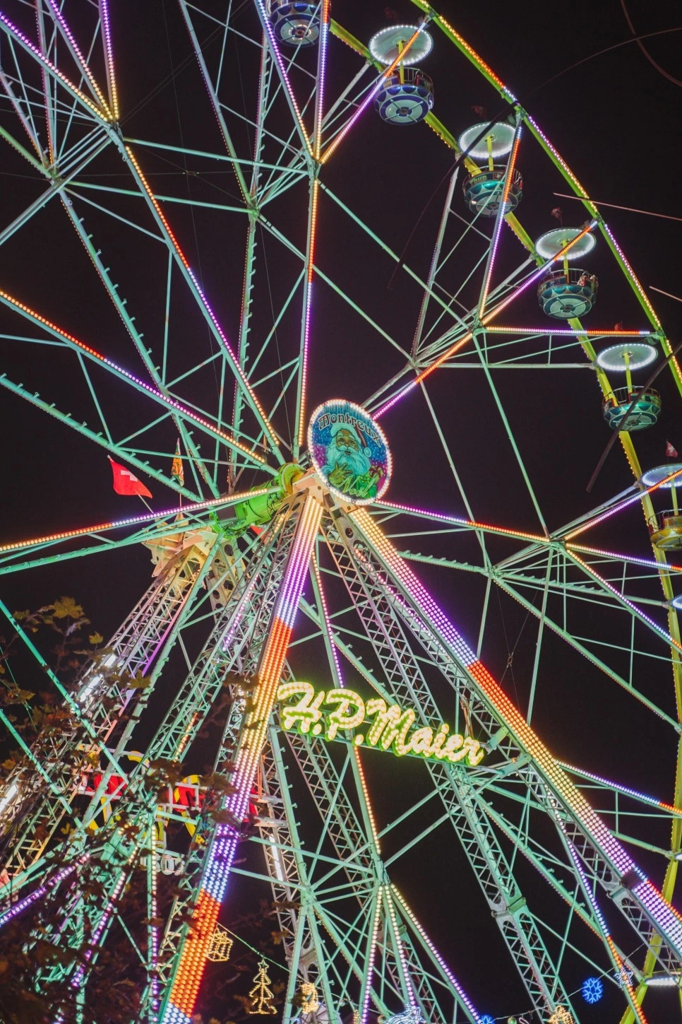 대관람차는 몽트뢰 크리스마스 마켓의 시그니처다. 크리스마스 마켓에 진심인 스위스 몽트뢰답게 일루미네이션, 산타 그림, 크리스마스 데코로 화려하게 빛난다.