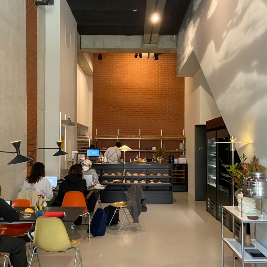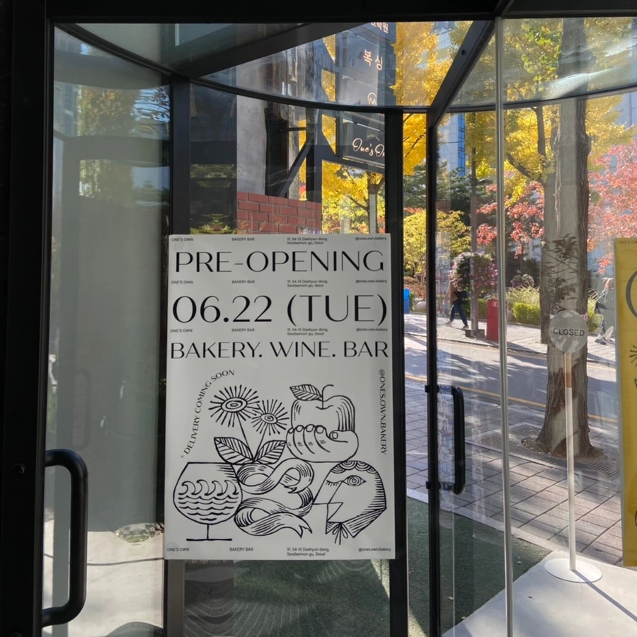 원즈오운은 베이커리 카페이다. 기본적으로 빵과 커피, 수프를 판매하고 저녁엔 술을 함께 파는 베이커리 바로 운영한다. 단단하고 거친 바게트, 깜빠뉴 등 다양한 종류의 유럽식 빵을 만나볼 수 있다. 전체적으로 모던하고 심플한 분위기에 의자 컬러로 포인트를 줬다.