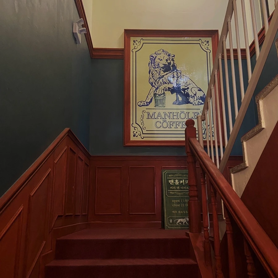 동행했던 친구보다 일찍 카페에 도착한 나는 5분 후에 그가 보내올 문자 내용을 예상했고 예상은 적중했다. '나 도착했다는데 여기가 맞아?' 평범한 동네 상가 앞에서 지도만 멍청하게 들여다보고 있다면 맞게 찾아온 것이다. 맨홀 커피는 학원과 빨래방으로 호실을 채운 상가의 지하에 위치해있다.