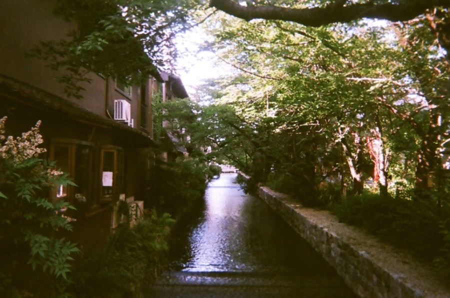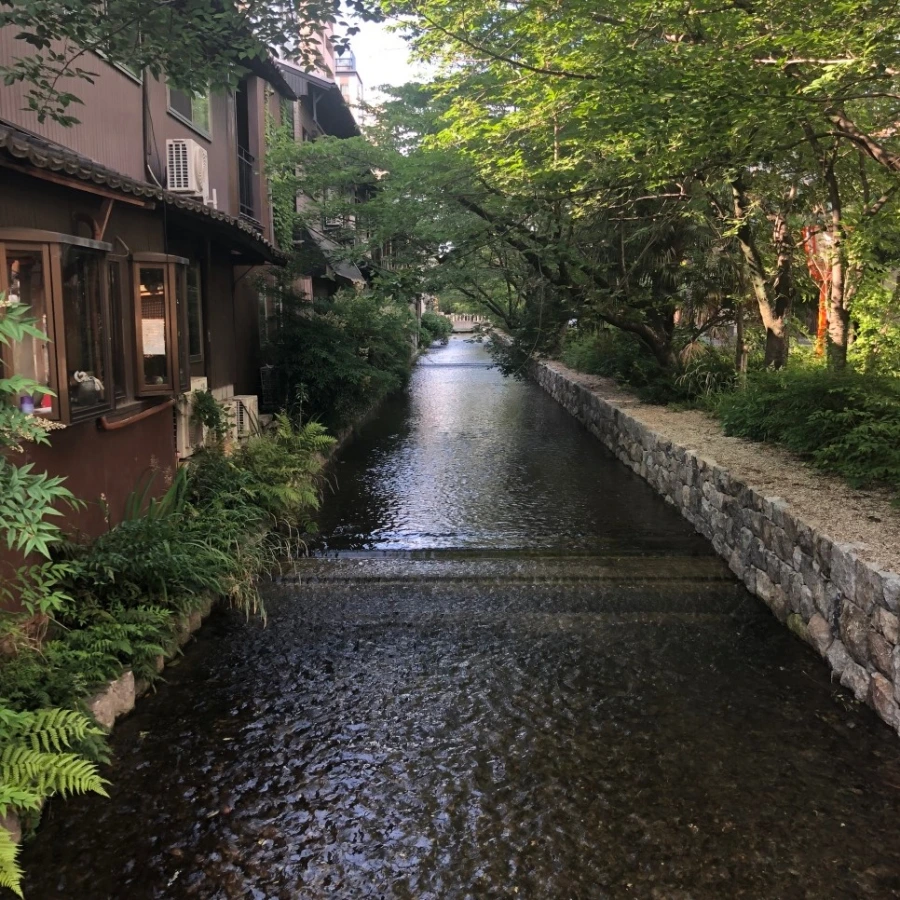 교토는 선술집이 늘어선 카모강이 유명한데, 산조 거리에 작게 흐르는 다카세강도 아름답다. 다카세강은 수심이 얕고 폭도 좁아서 강보다는 냇가에 가까운데, 마을을 관통하는 물줄기와 나무의 녹음이 여유로운 풍경을 자아낸다.