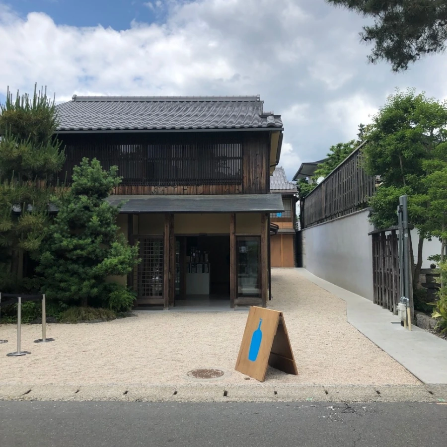 교토 블루보틀 1호점은 목조주택을 개조하여 일본 전통가옥의 미를 살렸다. 정돈된 정원과 나무 창살이 현대적인 커피 브랜드와 조화롭게 어울린다. 여행 당시, 자전거를 타고 지나칠 뻔하다가 파란색 입간판에 멈춰 섰다.