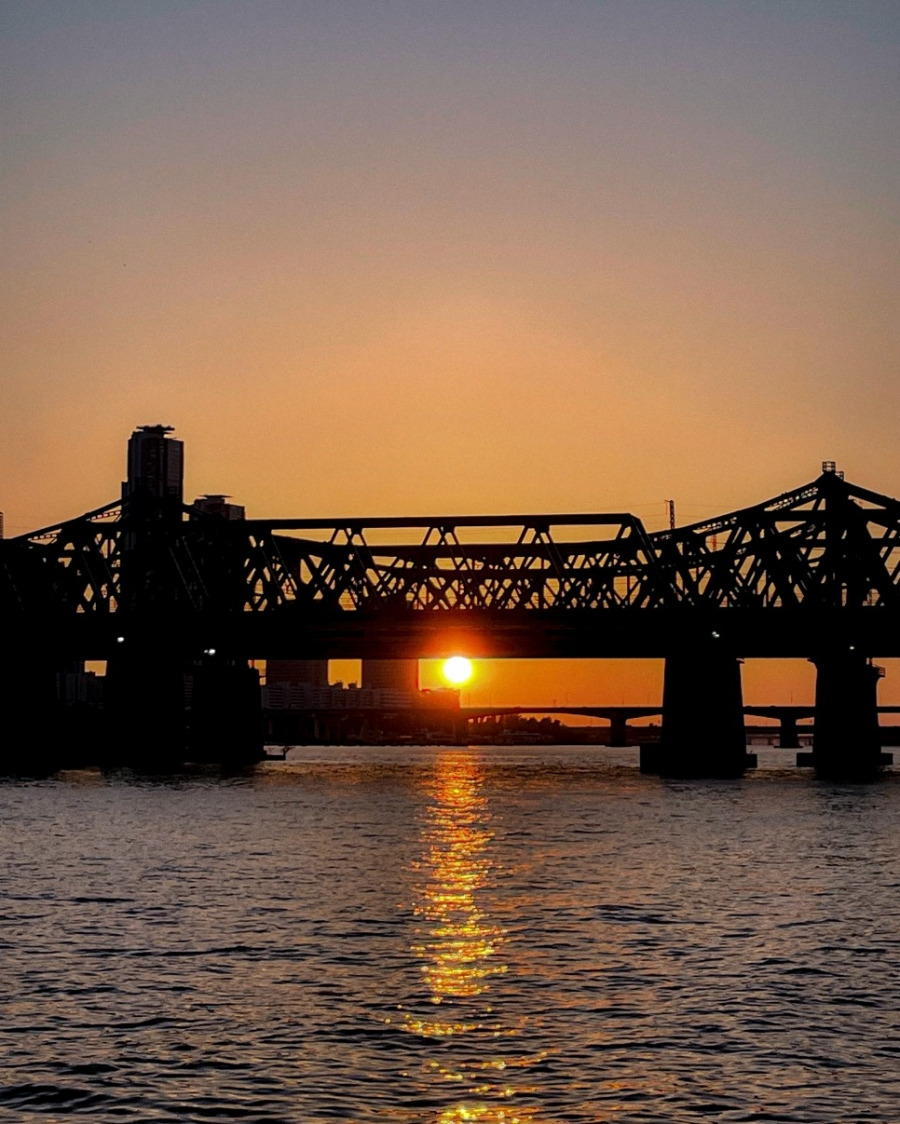 해가 저무는 시간에 따라 하늘색은 수시로 변한다. 파란 하늘에서 보라빛하늘, 지기 전 붉은 하늘, 그런 하늘색을 담아내는 강물까지. 모든 자연의 색감이 만든 아름다움은 낭만적이지 않을 수도 없다.