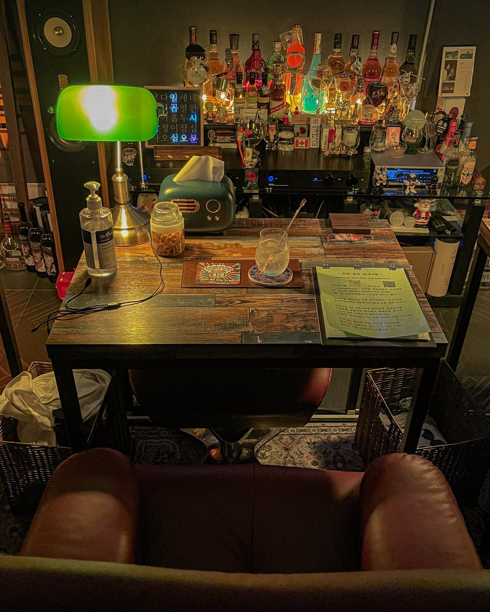 술과 음악을 즐기는 바. 이곳은 대화를 위한 공간은 아니다. 아니 대화를 할 수 없다. 그럼 뭘 하냐고? 그저 술과 음악.
