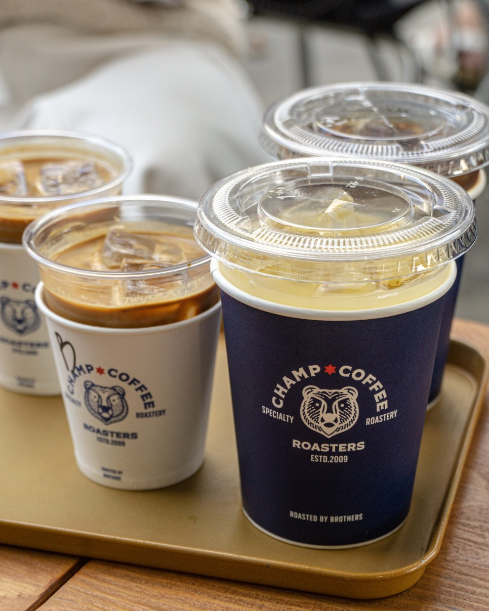챔프커피의 시그니처인 챔프커피와 산미 있는 핸드드립 한 잔을 시켰다. 챔프커피는 플랫화이트같이 우유를 라테보다 덜 넣어 만든 커피로 진한 에스프레소 향과 고소한 밀크 스팀이 만나 부드럽고 고소하다. 시그니처라 할만하다.