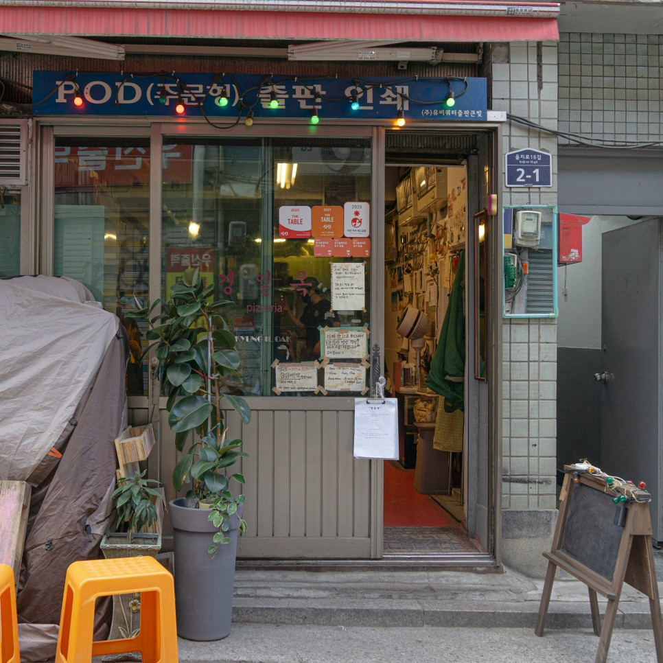 을지로는 여전히 여러 공장과 인쇄소가 운영 중인 상업거리다. 여러 공업소 사이사이 숨어있는 상점들이 을지로의 매력을 더한다. 전혀 예상하지 못한 곳에서 만나는 새로운 공간이 오히려 이목을 끌게 만든 걸지도 모르겠다.