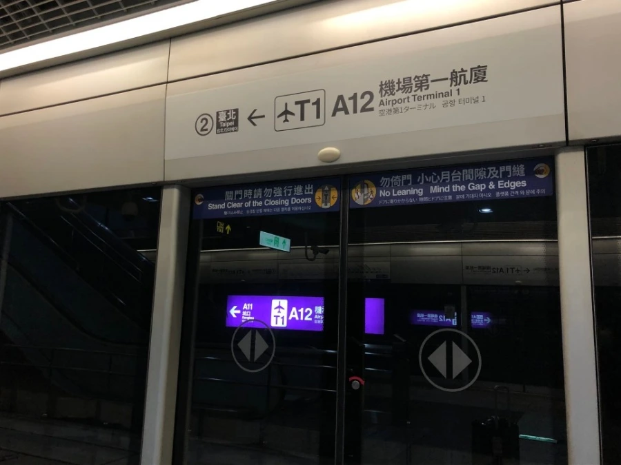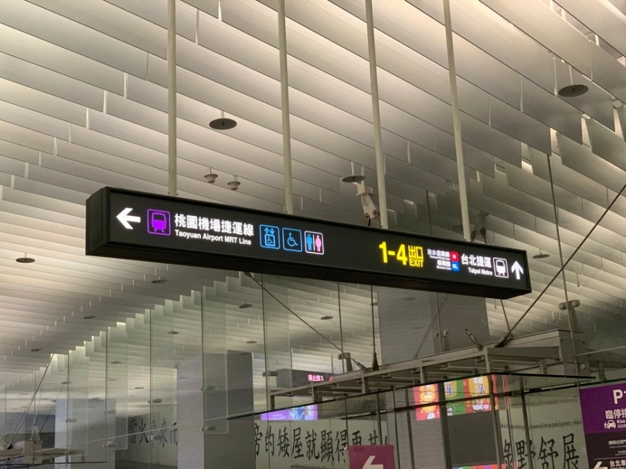 타오위안 공항 1터미널 기준, 입국 수속과 짐 찾기를 마치고 나오면 시내까지 갈 수 있는 교통수단을 표시한 표지판이 있다. 우리는 MRT가 표시된 방향으로 걸어가면 된다.