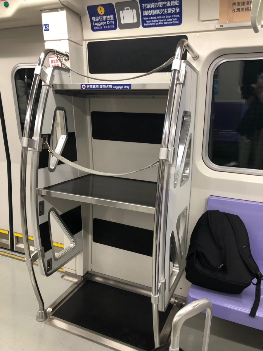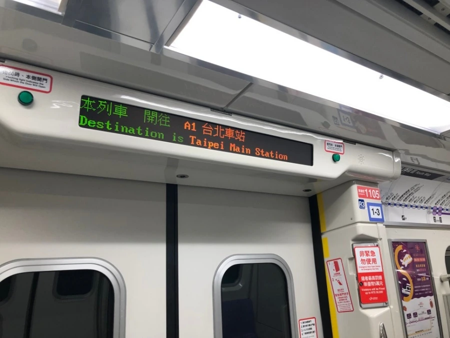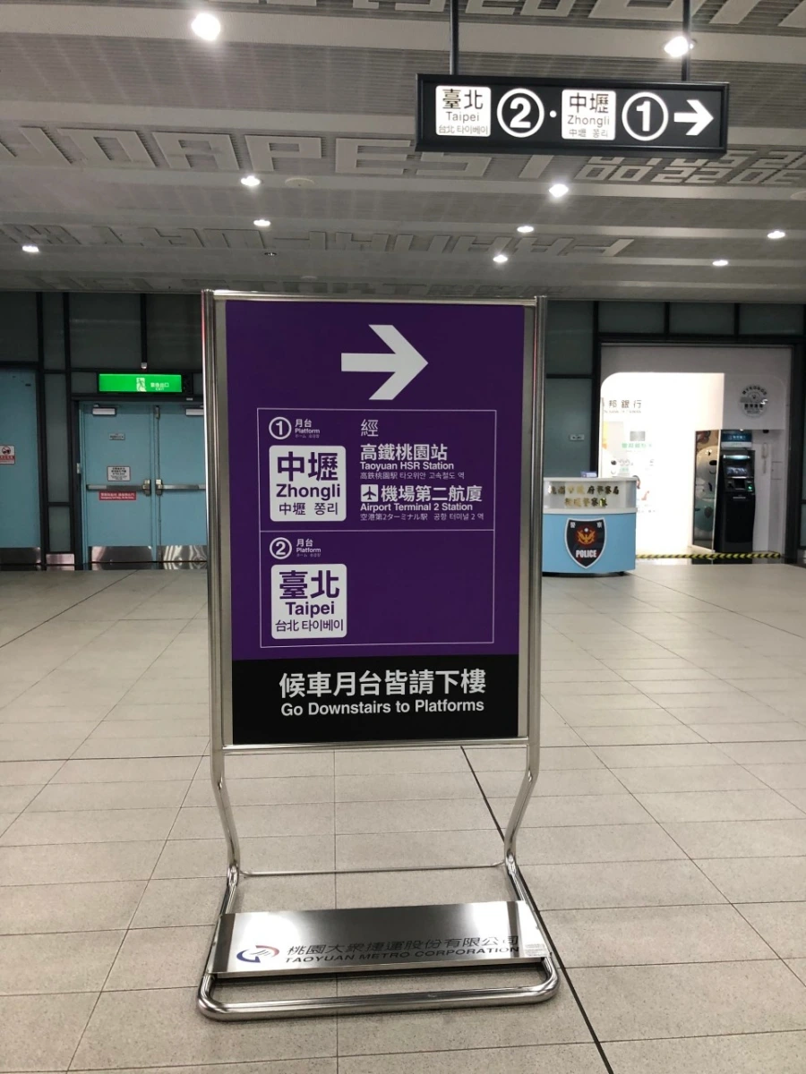 대만 공항철도 MRT는 보라색 라인인 급행열차와 파란색 라인인 보통열차로 나뉜다. 타오위안 국제공항 2터미널역에서 출발해 타이베이역까지 급행열차로는 36분, 보통열차로는 51분.