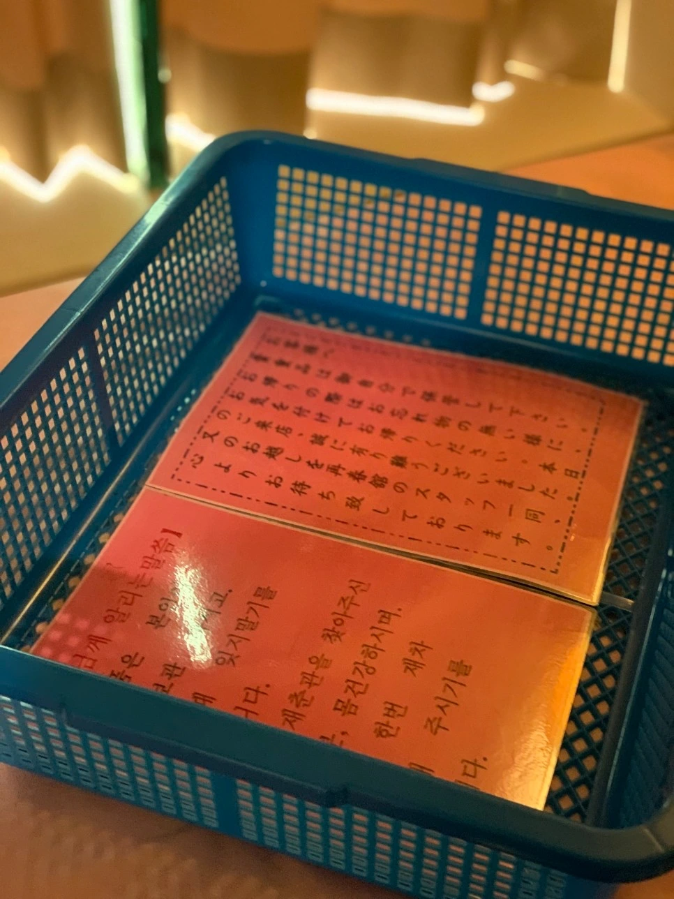 소지품을 보관할 수 있는 바구니와 마사지 중 덮을 수 있는 따뜻한 수건, 그리고 마사지복을 침대 위에 올려준다. 소지품을 주황 바구니에 보관 후 마사지복으로 환복하고, 준비가 다 되었다고 말하면 담당 마사지사가 배정된다.
