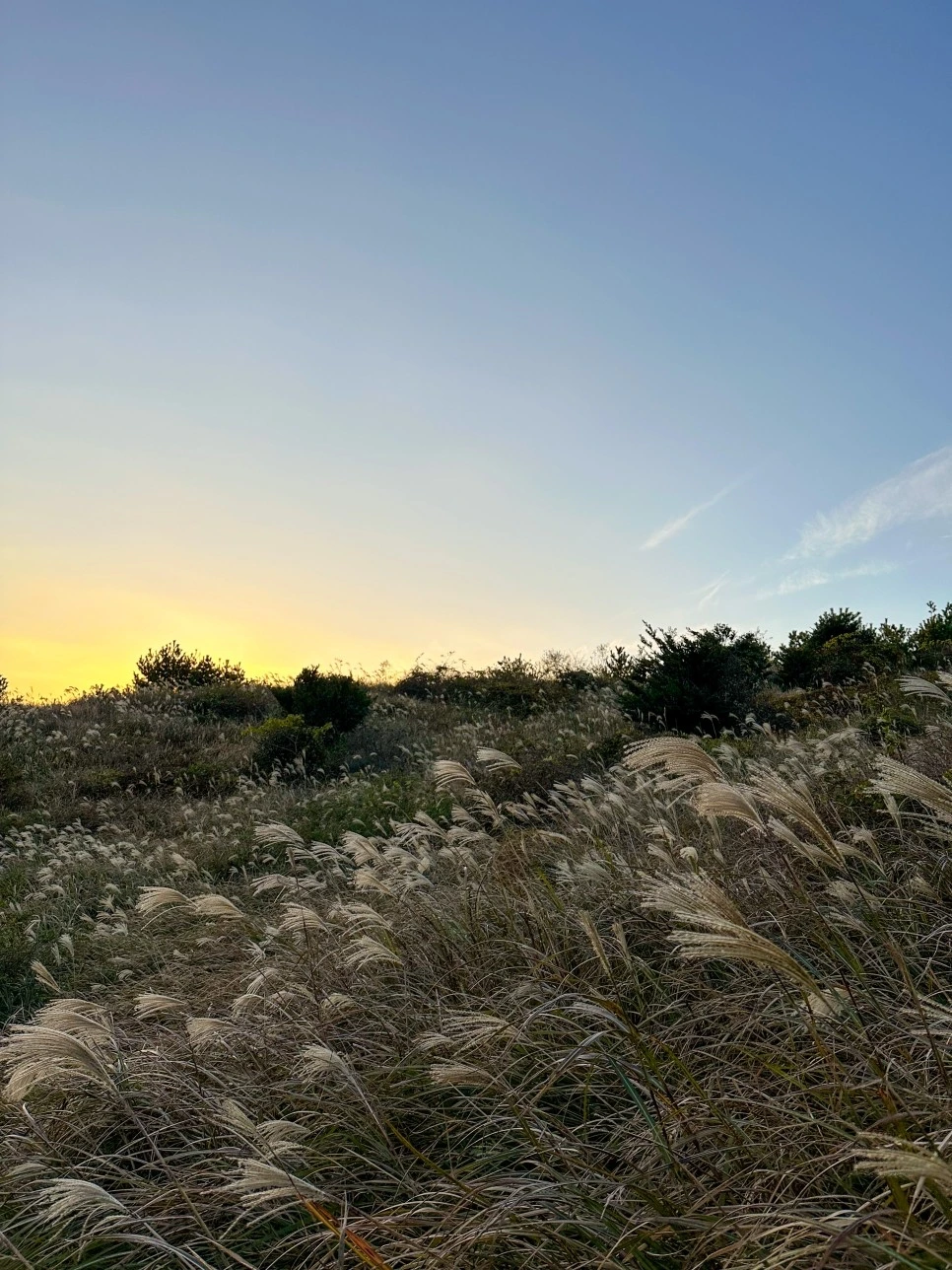사실 중허씨가 따라비오름에 방문한 이유는 억새보다 더 중요한 이유가 있다. 이곳은 동쪽에 위치한 오름임에도 불구하고 일몰을 감상하기에 가장 아름다운 장소이다. 보통 '동쪽'하면 일출을 떠올리지만, 따라비오름은 일몰이 더욱 빛나는 곳이다.
