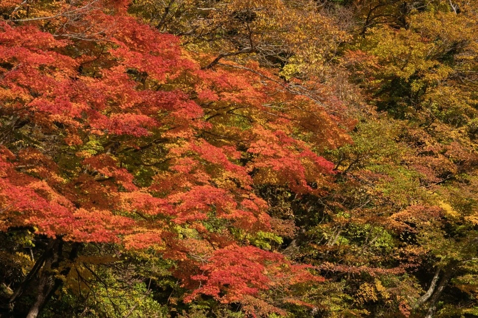 천아계곡에서는 빨강, 노랑, 초록 총 세 가지 색으로 물든 단풍을 감상할 수 있어 조금 색다른 가을 단풍을 경험할 수 있다.