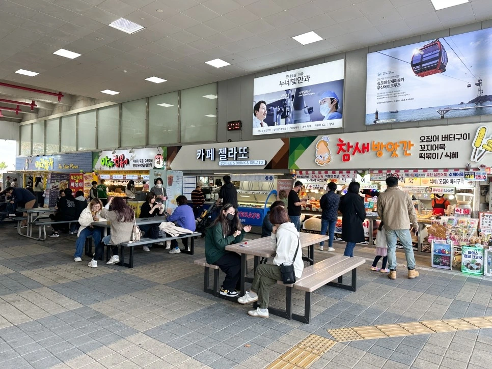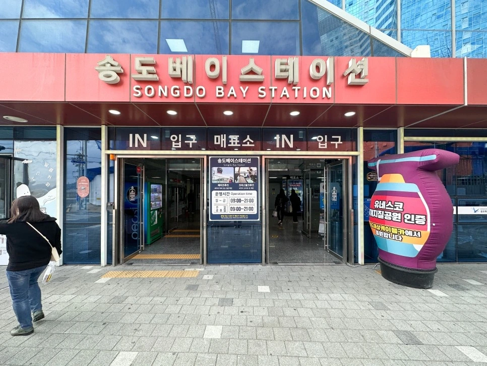 약 15분의 시간이 눈 깜짝할 사이에 지나고, 어느덧 반대편 탑승장인 송도 스카이파크에 도착했다. 주전부리를 판매하는 상점을 비롯해 안팎으로 쉬고 즐길 수 있는 공간들이 활기찬 분위기를 자아낸다.