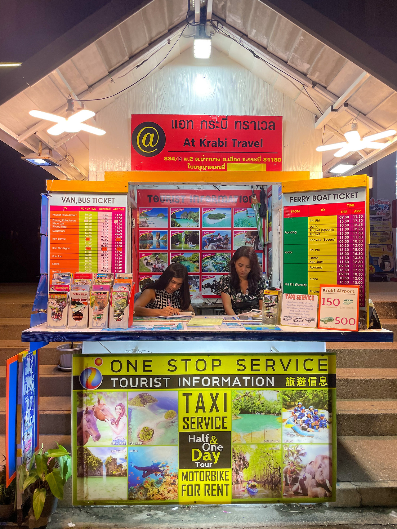 홍섬투어에 가기 위해서는 끄라비 아오낭에 위치한 여행센터에서 예약하면 된다. 여행센터에서 나와 있는 가격은 성인 기준, 스피드보트 2400바트, 롱테일보트 1600바트이다. 하지만 동남아는 흥정이 필수인 나라이니 참고하길.
