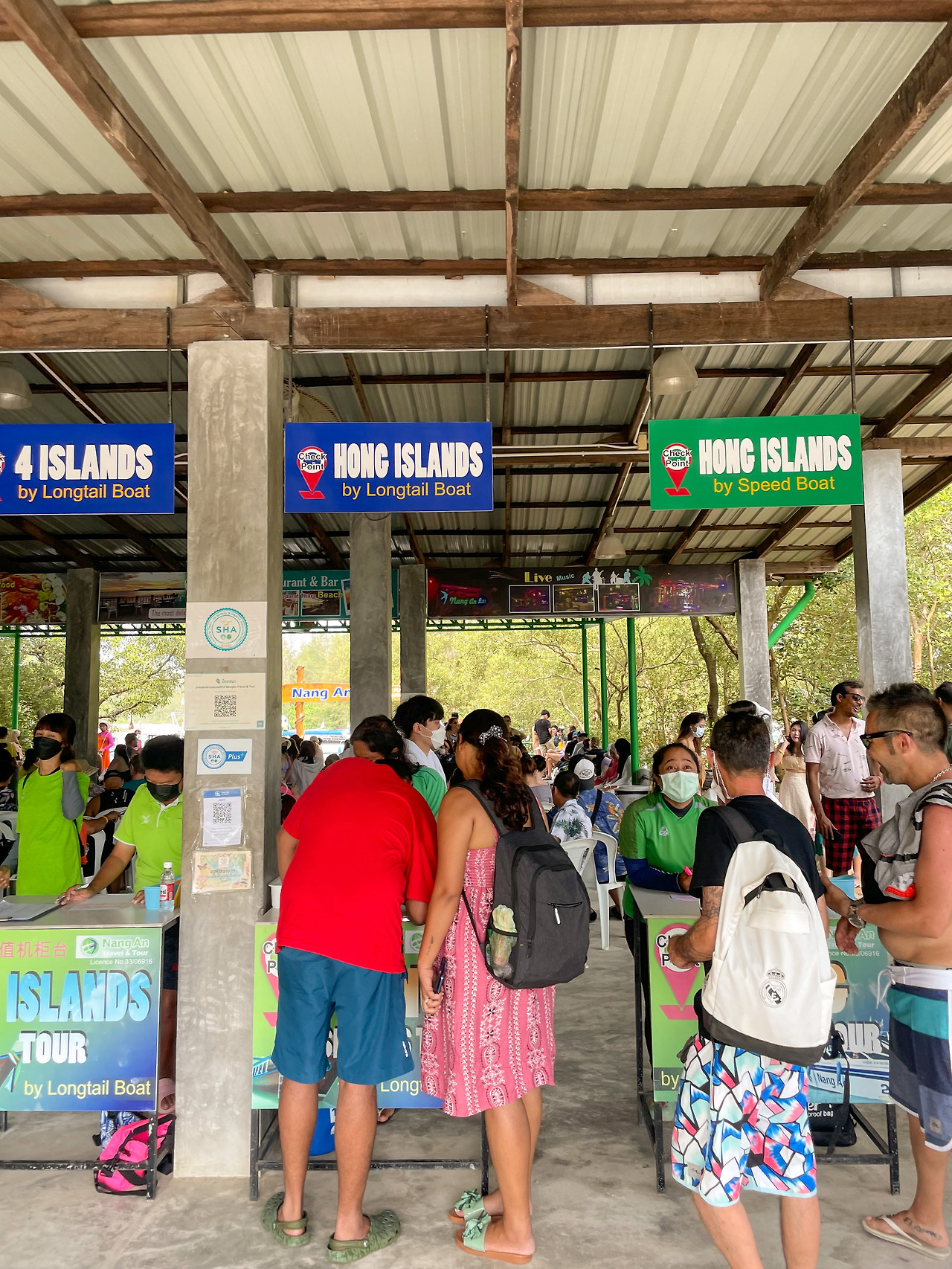 홍섬투어를 가는 스피드보트와 롱테일보트 리셉션이 알아보기 쉽게 나눠져있으니 본인이 예약한 곳으로 가면 된다. 홍섬 투어뿐만 아니라 피피섬투어, 4섬투어 등도 Nang An Pier에서 출발하기 때문에 다른 리셉션과 헷갈리지 않도록 주의하자.