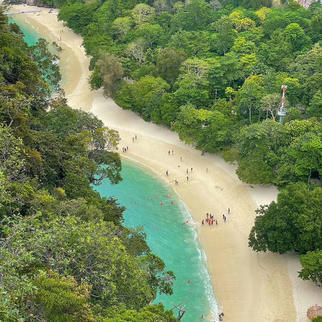 전망대에 올라가면서 보이는 홍섬의 해변이다. 끄라비 특유의 기암괴석들로 인해 자연적으로 나누어진 에메랄드 색으로 가득 찬 두 해변. 전망대에 올라가는 길이 쉽지만은 않지만, 탄성을 자아내는 배경들 덕분에 힘들지 않을 것이다.