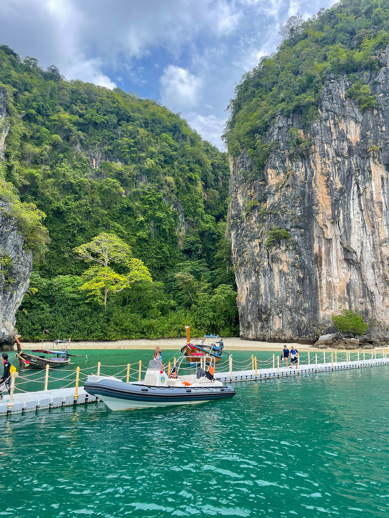 홍섬투어를 가기 위해 현장에서 국립공원 입장료 300바트를 지불해야 한다. 에디터 Y가 예약한 홍섬투어는 롱테일 보트다. 여행센터에서 예약한 영수증을 보여주고 입장료를 지불하면, 간단한 인적 사항 확인 후 옆에 있는 연두색 팔찌를 나눠준다.