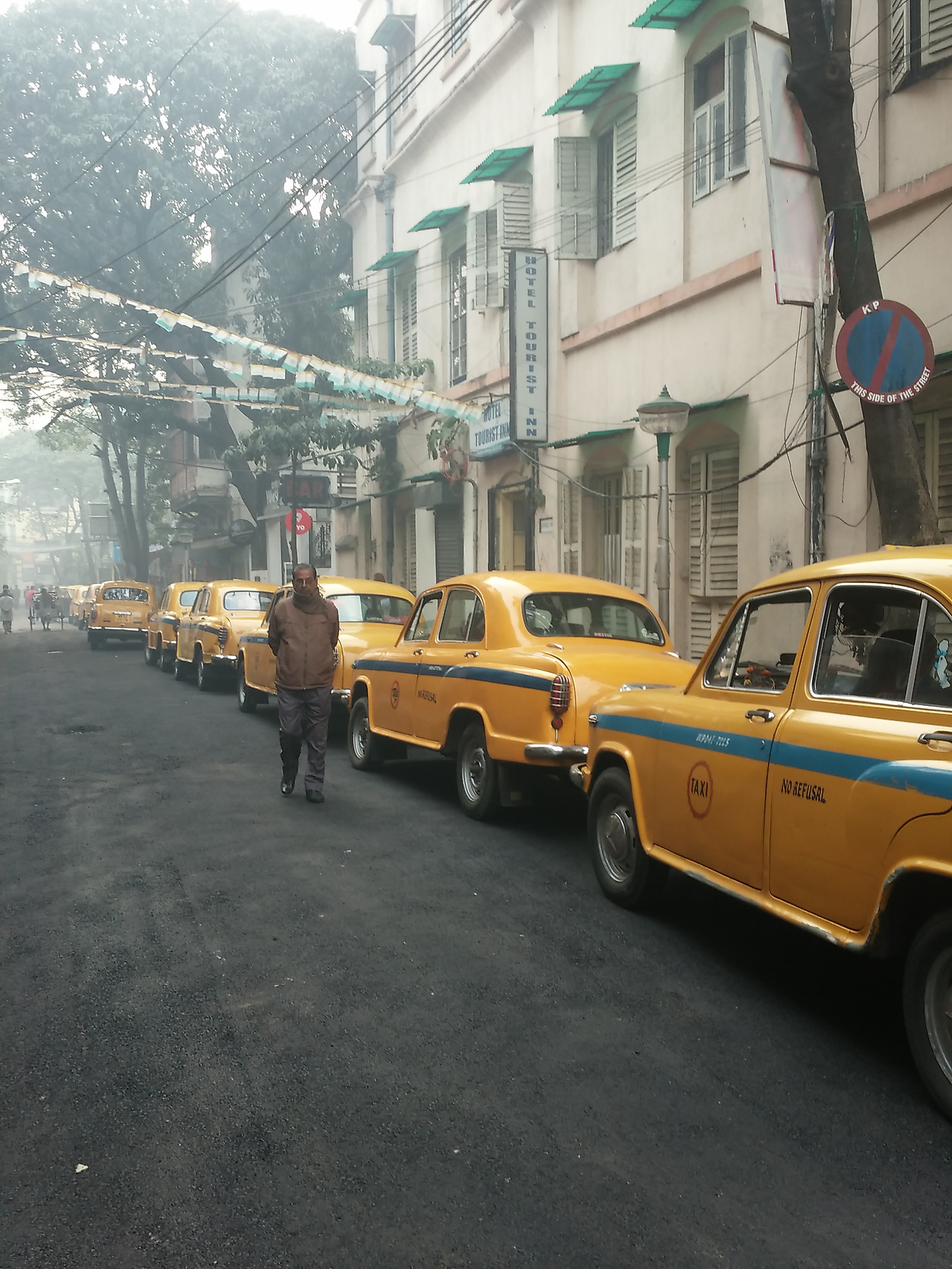 공항 근처 게스트 하우스에서 사다르 스트리트까지 300루피를 주고 택시로 이동했다. 택시에서 내리자마자 좋은 게스트 하우스를 소개해 주겠다고 호객꾼들이 달려들었다. 뜨거운 물은 나오는지, 와이파이는 되는지 확인한 후에 호객꾼을 따라갔다. 그런데 가는 곳마다 방이 없었다. 11월에서 2월까지 인도의 겨울은 여행객들이 넘쳐나는 성수기이다. 더구나 새해를 앞둔 연말엔 인도 여행객들도 많아 숙박시설이 많지 않은 콜카타는 비싼 방값에도 불구하고 방을 구하기 힘들다. 몇 군데를 돌아다녔는데도 방이 없었다. 와이파이가 되는 곳도 드물었다. 호객꾼이 와이파이가 된다고 데려간 곳 대부분이 "노 와이파이"라는 답이 돌아왔다. 대여섯 군데를 따라다니다. 화가 나서 호객꾼에게 손을 내치며
