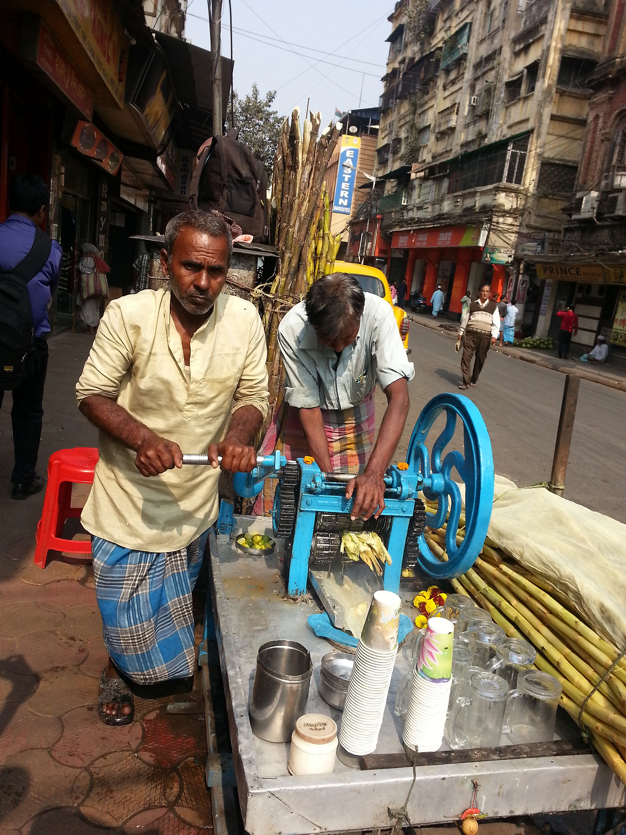 어딜 가나 사람 사람들이다. 연말이라 새해 준비를 하는 인도 사람들이 시장으로 쏟아져 나와 시장통은 북새통이다. 우리네가 설빔을 준비하고 새해를 준비하는 것과 별반 다르지 않다. 먼지 덕분에 목은 컬컬하고 눈은 따끔거린다. 더위도 한몫해서 갈증이 더할대쯤 눈에 띄는 것이 있었다. 인도 거리 곳곳에서 만날 수 있는 생과일주스가 우리의 목마름을 달래 줄 것 같았다. 원색의 싱싱한 과일들이 주스가 되어 나오는 모습은 정말 환상적이다. 한 잔에 20 루피 하는 생과일주스를 잘 생긴 인도 청년이 수줍은 듯 건네주니 더 상큼했다. 사탕수수도 즉석에서 짜 주는데 비리한 풋내 속에 든 달콤함이 유년의 첫사랑을 생각나게 한다. 있는 힘껏 사탕수수를 짓이겨내는 모습을 보면 10루피가 아깝지 않다.