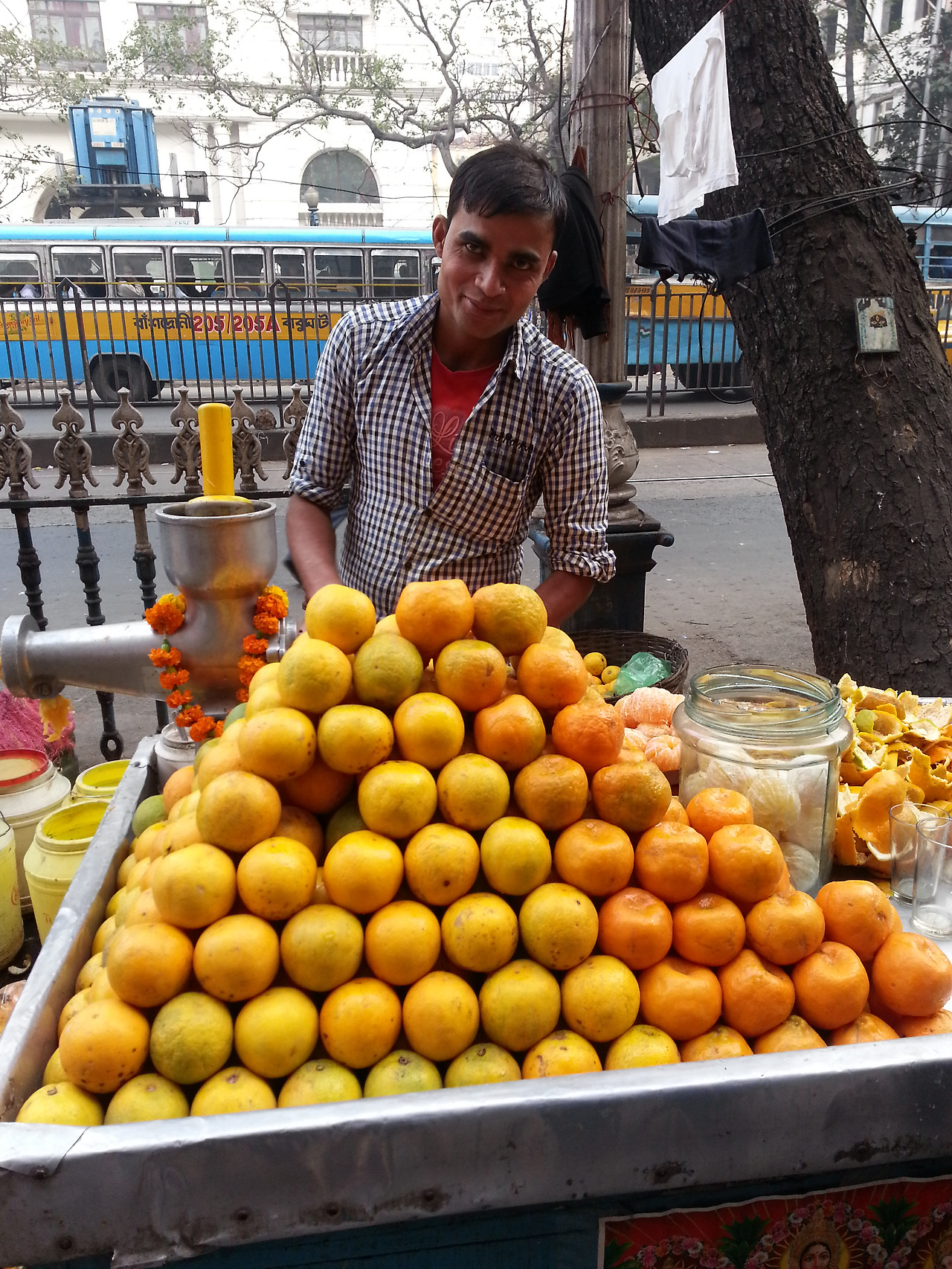 콜카타의 거리는 델리와는 전혀 다른 색깔을 하고 있다. 건물들도 유럽풍에 가깝고 사람들도 굉장히 역동적이다. 그래서 잠시 인도가 아닌 유럽의 어느 도시에 와 있는 것은 아닌가 하는 착각을 하게 한다. 칠이 다 벗겨진 노면전차를 비롯해서 화려한 그림으로 단장한 시내버스 그리고 눈에 띄는 노란색 , 흰색 택시들이 거만하게 도로를 달린다. 죄지은 것도 없는데 곳곳에 정복을 하고 서 있는 경찰들은 여전히 나를 주눅 들게 한다. 그들이 차고 있는 총이 진짜 총인지 호기심이 발동하여 들여다보면 정말 총알이 들었는지 궁금해하다 바짝 긴장이 돼서 차가운 총구에서 멀리 도망치게 된다.