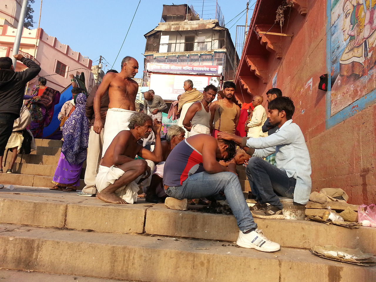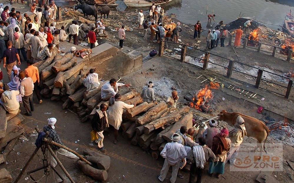 강가에는 시신을 태울 장작을 실어나르는 배들로 혼잡하다. 화장터에서 일하는 불가촉천민들은 머리에 수건을 두르고 커다란 통나무를 쉬지 않고 지고 나른다. 마니카르니카 가트의 화장터는 365일 24시간 불이 꺼지지 않기 때문이다.