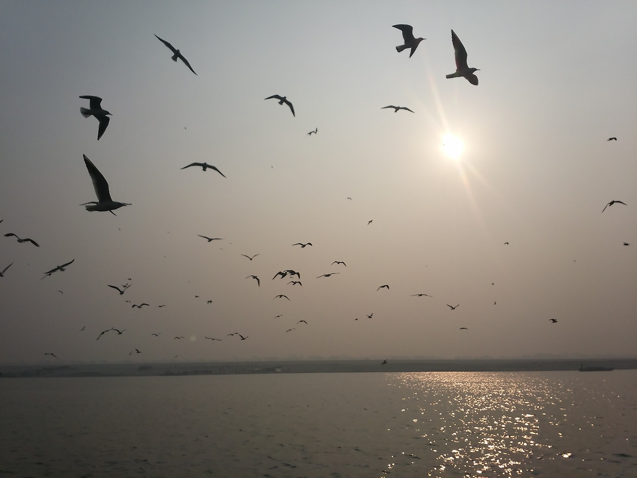 참새들과 함께 화장터가 있는 마니카르니카 가트로 향했다. 화장터 가까이 가자 죽음의 그림자가 드리운 것처럼 가트 곳곳에 검은 재가 묻어있었다. 화장터로 향하는 사람들의 발걸음은 조심스러웠다. 배에서 사진기를 들고 화장터를 주시하는 사람들도 있었다. 죽음의 냄새를 맡고 화장터 주변을 어슬렁거리는 병든 들개와 염소들 그리고 소들! 천연덕스럽게 망자의 불 옆에서 잠을 청하는 녀석들은 죽음을 초월한 저승사자 같았다. 무언가 어수선하고 바쁘게 돌아가는 듯한데 이곳의 하늘만 궹한 눈을 하고 있는 듯했다. 참새들이 걸음을 멈추는 곳에서 나도 걸음을 멈추었다.
