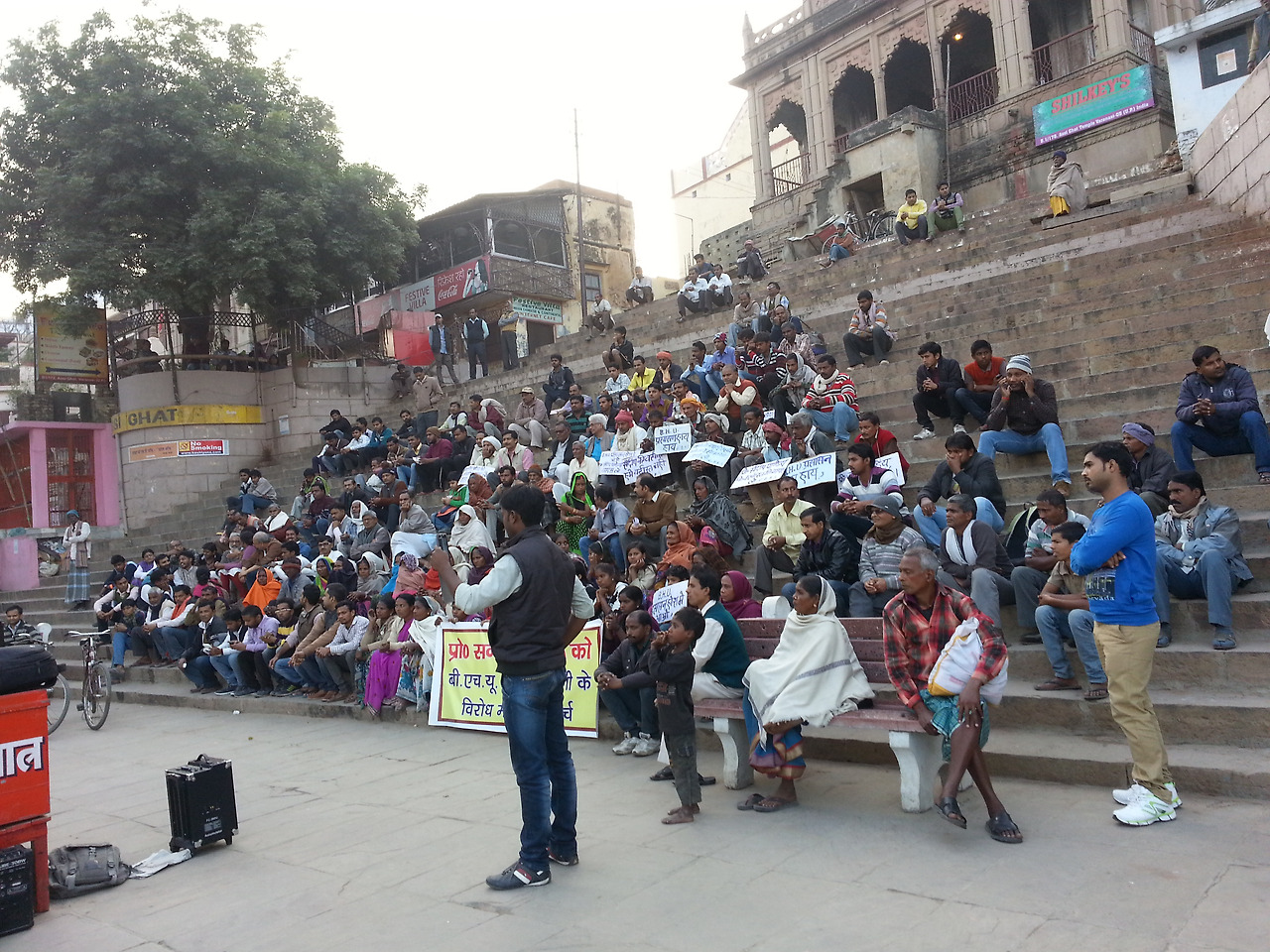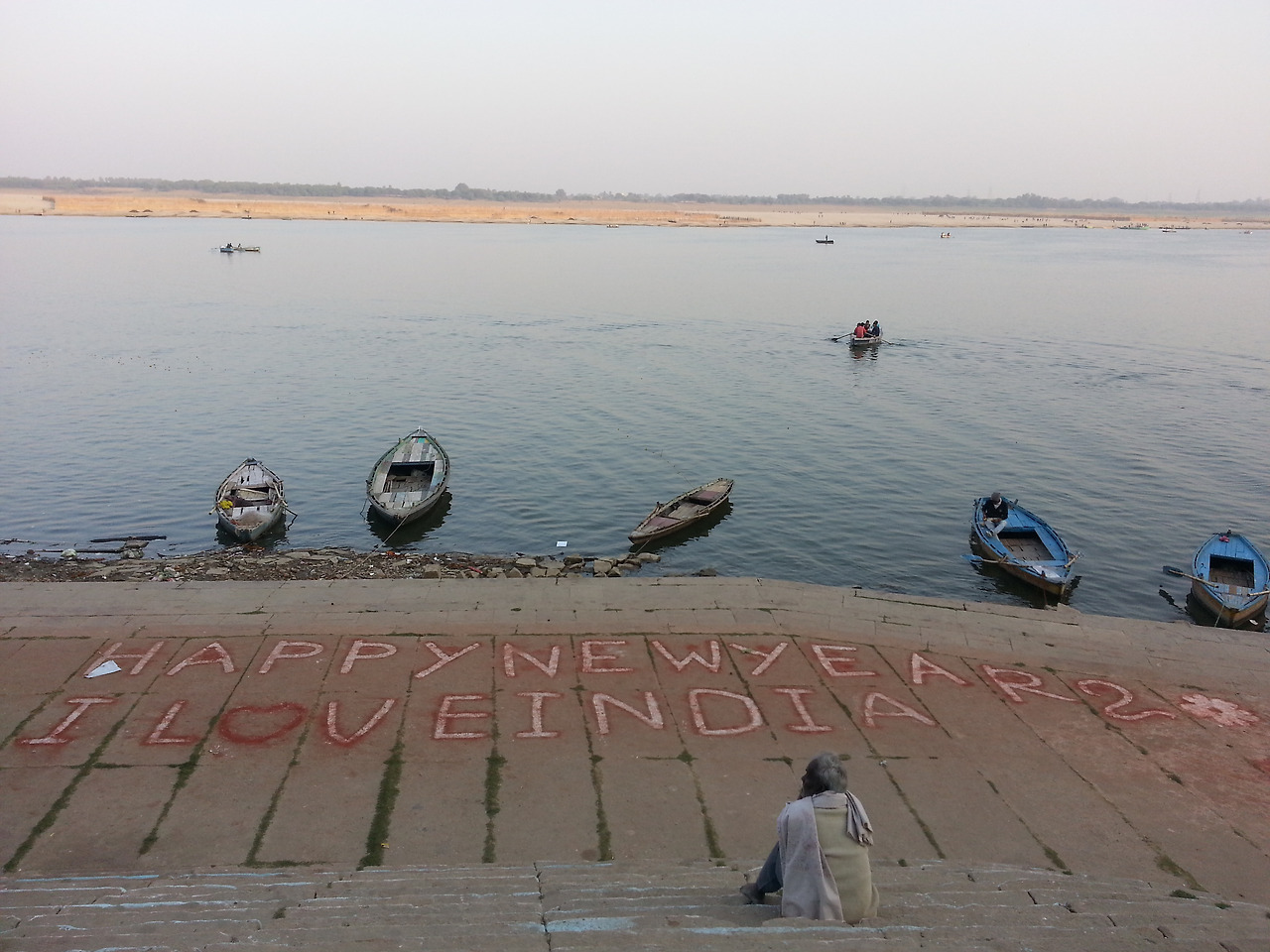 한 시간 정도 걸어 아시 가트에 도착했다. 여름에 왔을 때 가트가 완전히 물에 잠겨 볼 수 없었던 곳이었다. 밀집한 군중들과 반짝이는 태양에 반짝이는 은빛 스테인레스 그릇을 앞에 두고 앉은 걸인들! 그들은 음지와 양지로 나뉜 서로 다른 세상에서 살고 있는 사람들 같았다. 강가에서 불어온 시원한 바람이 사람들 사이를 빠져 나와 힘없는 나뭇가지를 흔들고 있었다.