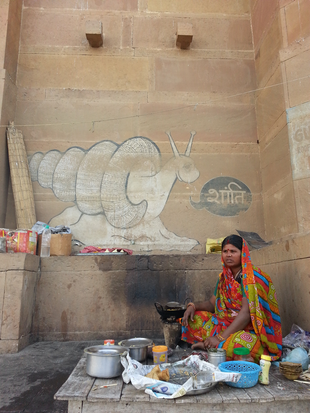 나는 남쪽 가트를 따라 천천히 걷기로 했다. 가트에 면한 높은 성벽에 그려진 벽화들이 눈길을 끌었다. 사다리에 올라 벽화를 그리는 청년을 한참 바라보기도 했다. 그림을 좋아해선지 가트의 젊은 화가들 앞에서도 걸음을 멈췄다.