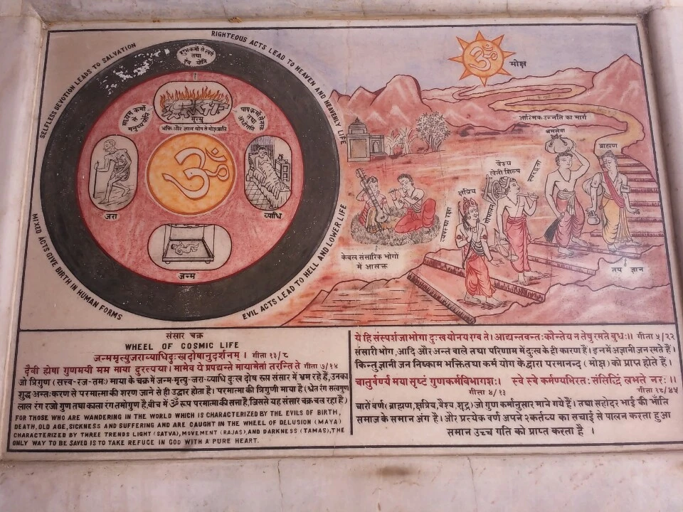 사원 내에는 7편 2만 4천 시구로 된 라마 왕의 무용담을 담은 고대 인도의 산스크리트 대서사시 라마야나와 신에 대한 노래인 바가바드 기타가 그림과 함께 벽면을 메우고 있었다.