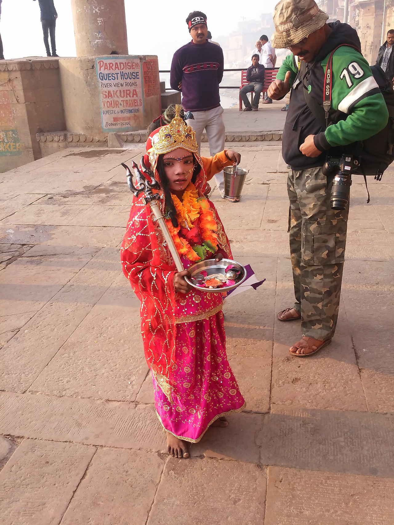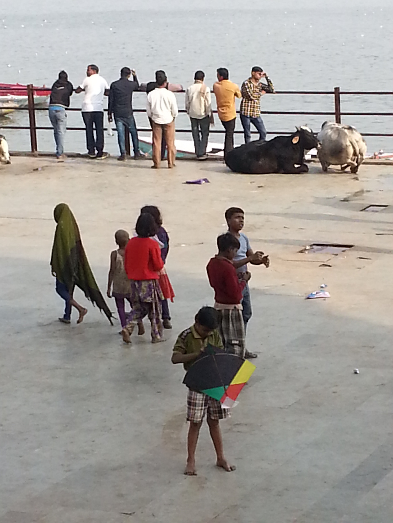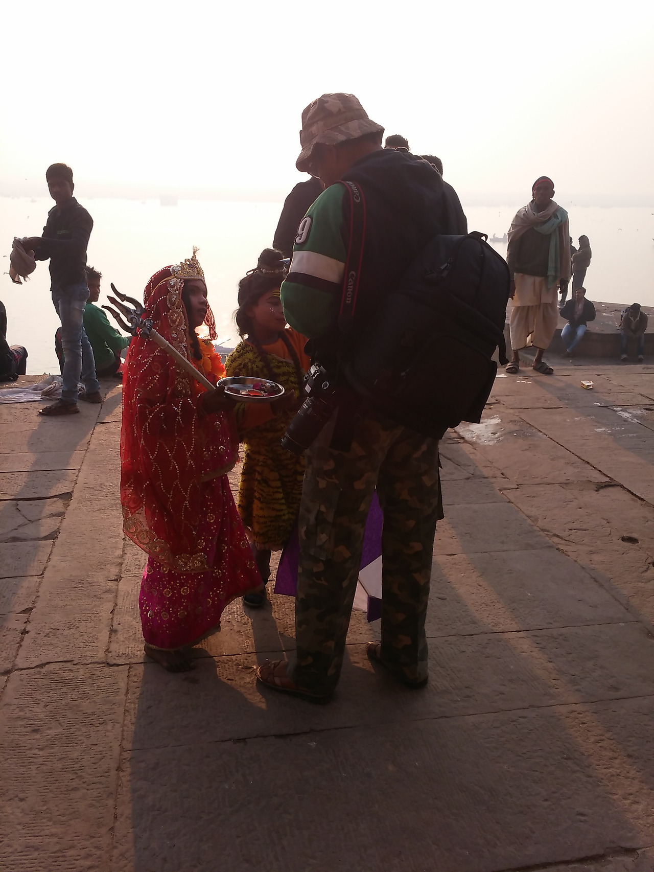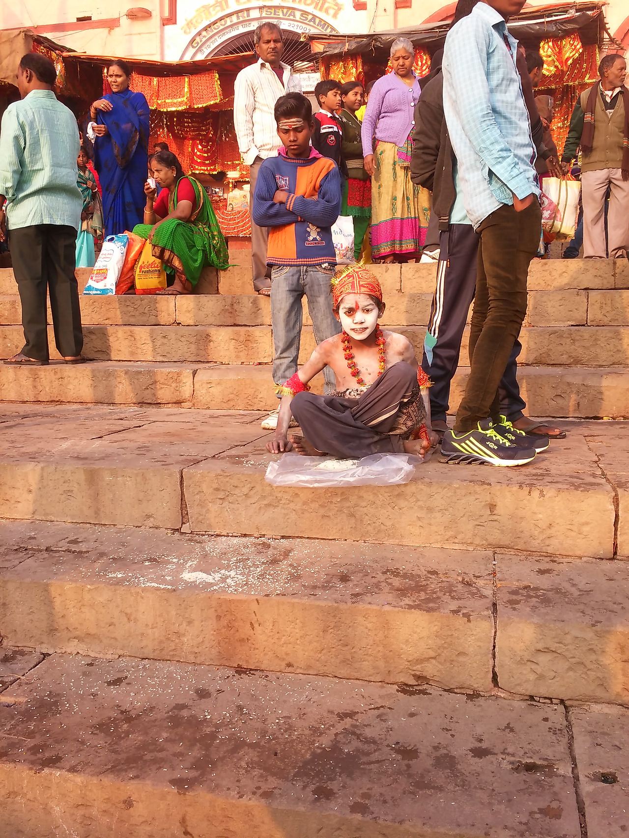 가트에는 축제를 즐기는 사람들이 가득했다. 메인 가트에는 경찰들이 나와 있었고 확성기에서는 소지품을 잘 관리하라는 방송이 반복적으로 나왔다. 어머니품에 안기려는 많은 사람들은 혼잡한 계단을 조심스럽게 내려가 강가에 몸을 담그고 젖은 몸을 말리느라 정신이 없었다. 전문 사진사들은 돈을 받고 어머니 품에 안긴 사람들을 사진기에 담고 그 자리에서 현상해 주었다. 활기 넘치는 사람들로 인해 살아있는 강가를 만난 것 같았다.