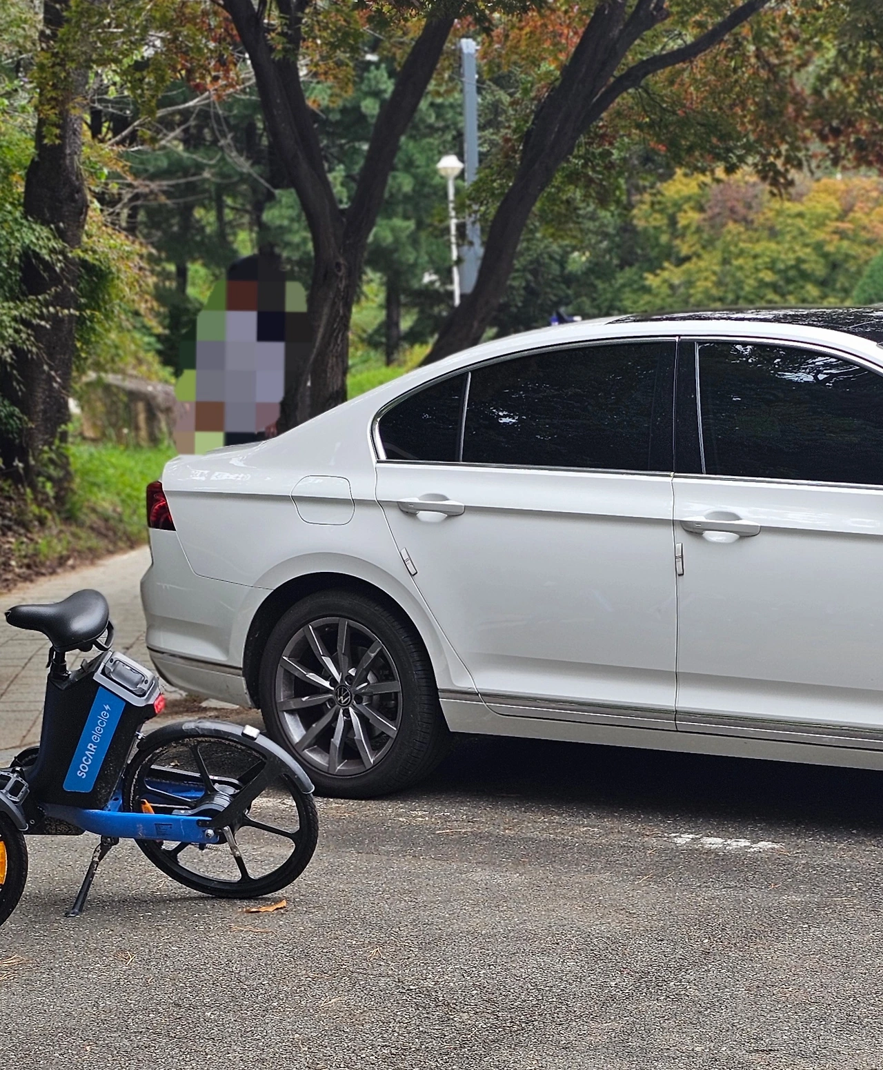 지팡이에 방향감각을 의존해야 하는 학생 앞에 공유자전거가 놓여 있다. 결국 그는 허둥댔다. 공유경제를 누리지 못하면서 피해만 입어야 하는 사람이 있음을 되새겨 본다.
