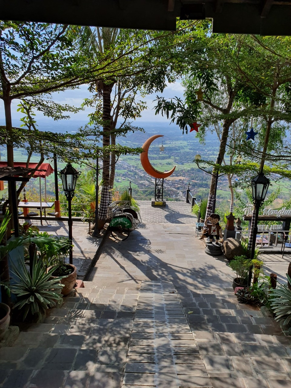 족자의 카페 클라쓰. 뷰가 좋은 곳에 저렇게 달 모양의 포토스팟을 만들어 놨다. 사다리를 타고 올라가서 사진을 찍고 싶었지만 햇빛에 달궈진 철 사다리에 델 것 같아서 포기.