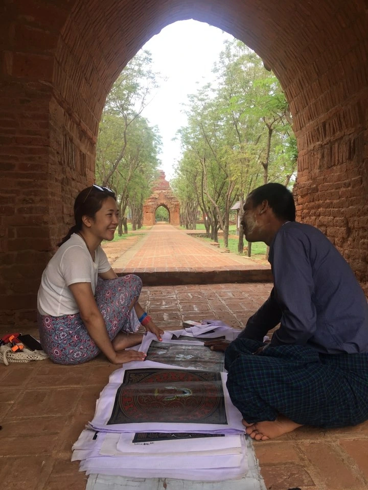 그늘에 앉아 선선히 부는 바람을 맞고 새 지저귐 소리는 완벽한 음악이고 바로 내가 앉은자리에서 펼쳐진 그림들이란.. 바간 신푸신 파고다에서 펼쳐지는 미술관 여행을 흔쾌히 오케이 했다.