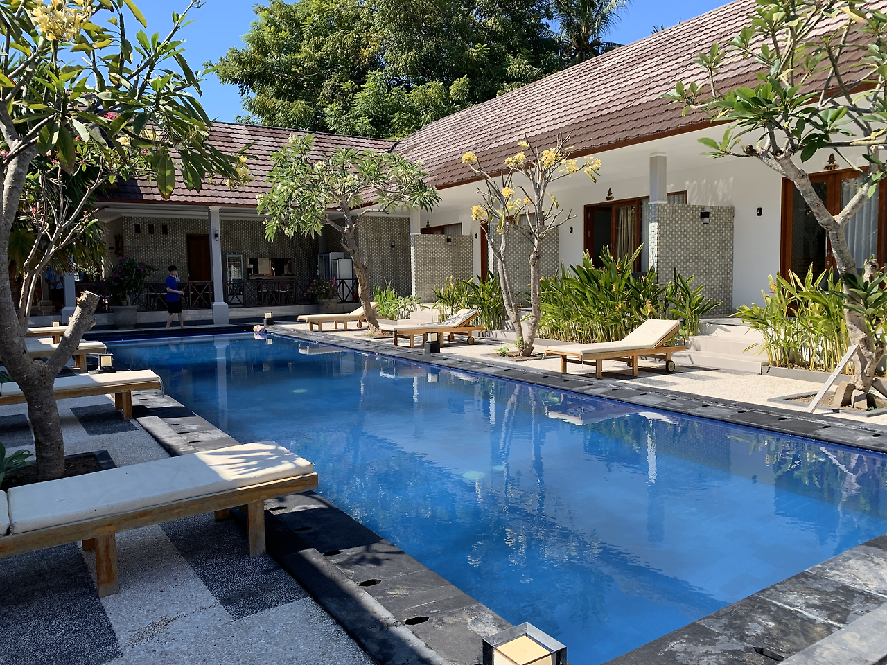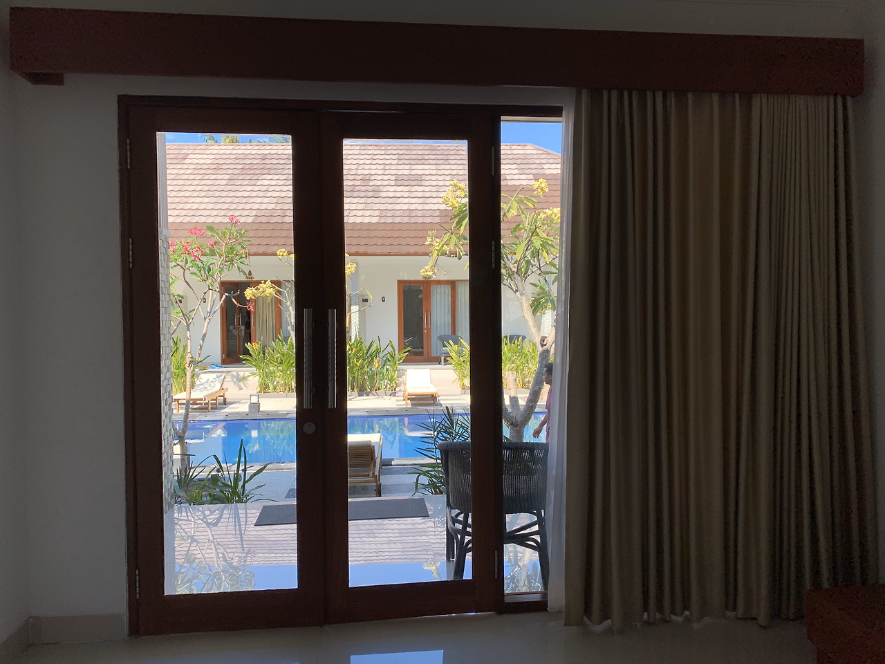 문을 열면 나오는 수영장과 테라스 그리고 큰 방 나의 큰 더블베드와 편안하고 깨끗하게 사용할 수 있는 나의 화장실을 보며 감동을 계속 받으며 한참을 새로 옮긴 나만의 숙소에 나오지 않았다.