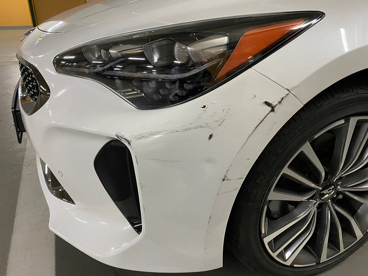 몇 달 전 아파트 주차장에서 우리 차를 슬쩍 긁고 도망간 차량을 씨씨티비를 뒤져서 잡은 터라 10센티 내외로 긁혔겠지 싶었던 제 생각과는 달리 이건 차를 긁은 게 아니고 처박고 간 수준이었습니다. (하, 그때도 사고처리를 안 하고 도망을 갔네요????? 물피 도주 하는 것들 아주 상습범들 천지입니다)