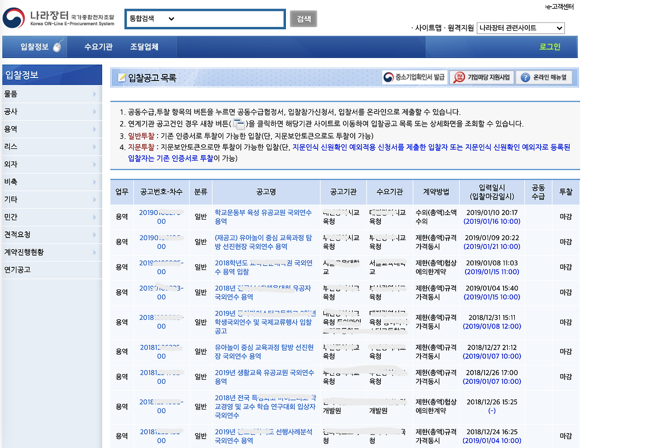 먼저 어느 기관, 몇명이, 어디로 떠나겠다 계획하면 예산이 정해집니다. 그 내용이 '나라장터'에 입찰 공고가 올라옵니다. 예산은 인원에 따라 다른데 보통 몇천~몇억대까지 다양합니다.
