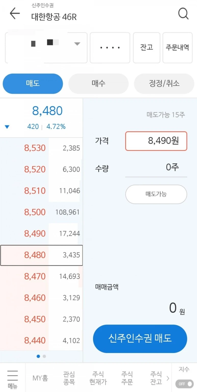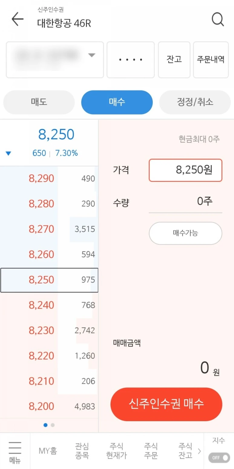이게 문제였다. 나는 주린이니까 이런 질문을 할 수 있지. 왜냐면 8,250원에 지금 매도도 되고 매수도 되니까. 신주인수권 개념 자체가 나에겐 없었다. ㅋㅋ 모든 오해는 대한항공 46R이 일반 주식인 줄 알았던 것에서 발생했다. 이건 그냥 신주인수권을 구매하는 개념인 것. (용어공부좀 하자 ㅋㅋ)