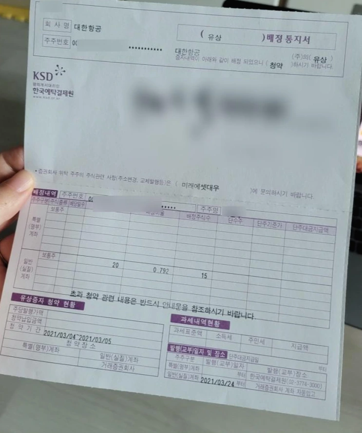이들이 청약일 이후 대한항공 1주씩으로 변한다는 것이다.