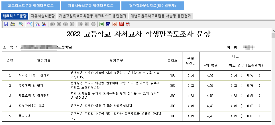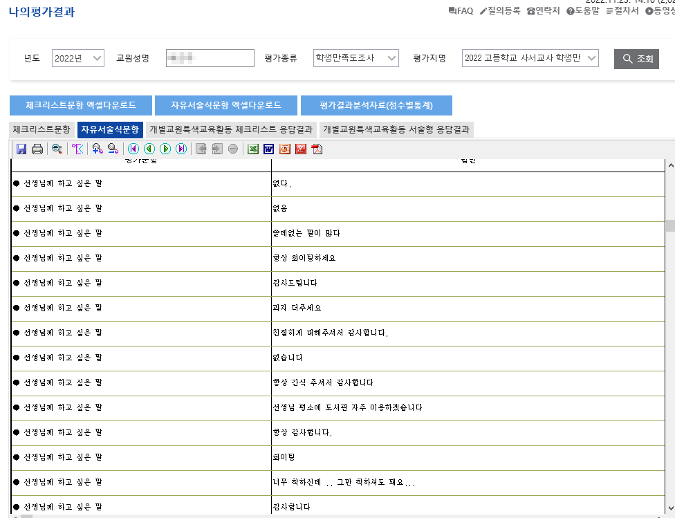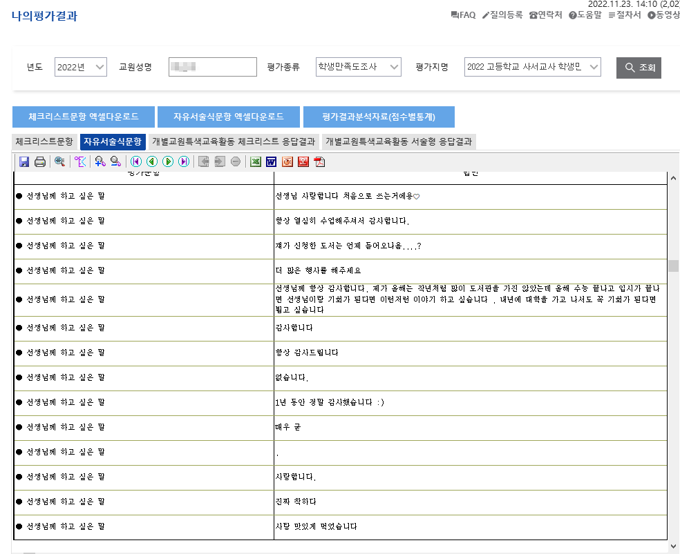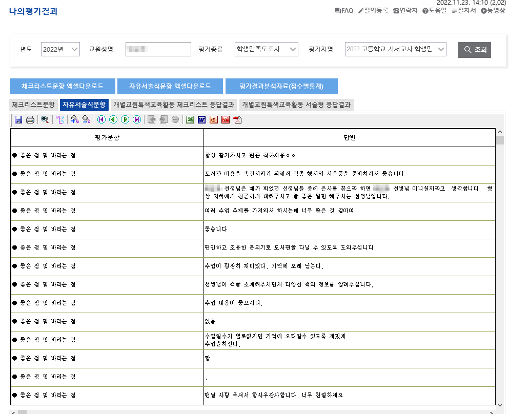 일반 교사는 해당 교과 학년에서만 평가를 받는데 나는 사서교사라서 전교생의 평가를 받는다.